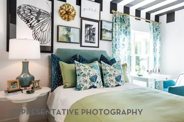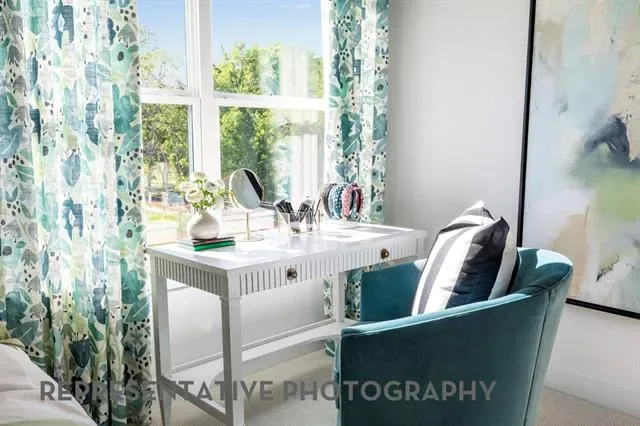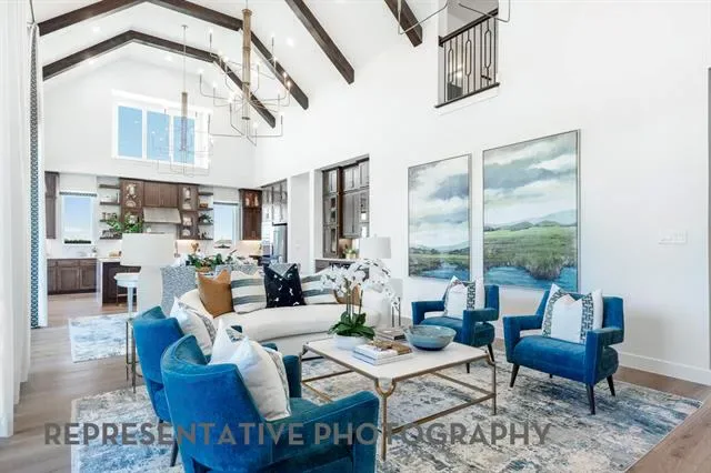 4 beds, 4 baths, 3 powder baths. Downstairs includes secondary bedroom with private bath, entertainment room and study. Upstairs includes 2 bedrooms with private baths, gameroom with wet bar and powder bath. Upgrades include extended outdoor living and extended primary suite. 3 car garage.