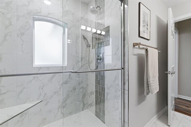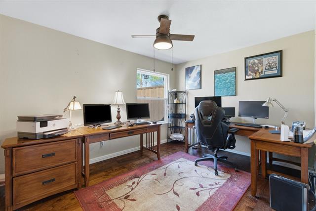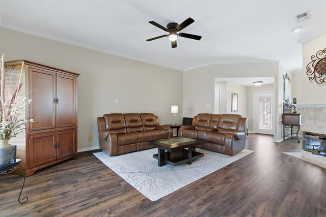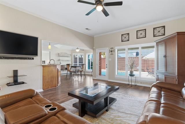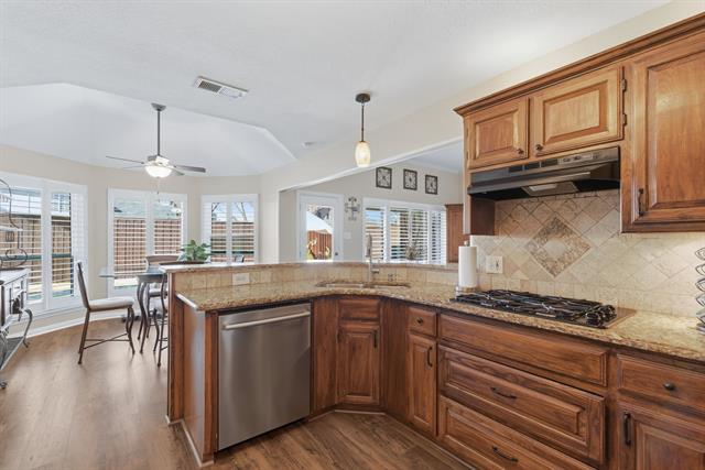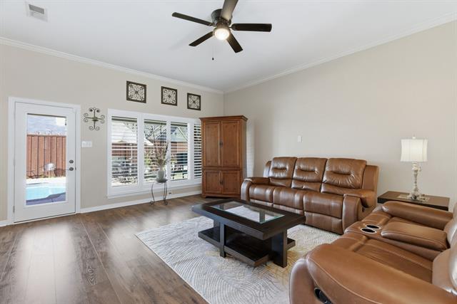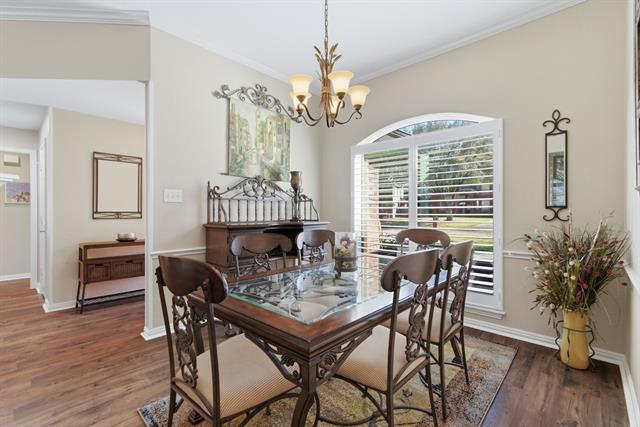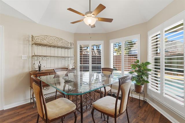 Located in the Glenwick Estates community of Flower Mound, this single-story brick home offers 4 bedrooms, 2 bathrooms, 2,189 square feet, a private backyard with an in-ground pool, and no HOA. The home sits on an interior lot and features a functional one level layout with a spacious living area, vaulted ceilings, decorative lighting, and a fireplace in the main living room designed for everyday living and entertaining. The kitchen features granite countertops, wood cabinetry, gas cooktop, microwave, dishwasher, disposal, and a breakfast area overlooking the backyard. The open layout connects the kitchen, dining areas, and living space, creating a practical flow throughout the home. Interior features include walk in closets, plantation shutters, and updated bathrooms. Major system updates include an HVAC system replaced ~six years ago, roof replacement with new gutters installed, updated windows with a lifetime transferable warranty, and new interior paint throughout. The property also includes an installed ADT security system with monitoring currently paid through May. The backyard provides outdoor living with a recently resurfaced PebbleTec chlorine pool designed with shallow ends, a deeper center section, entry steps, and built in bench seating. Additional exterior features include a covered patio, sprinkler system, landscaped yard, and an 8 foot board on board privacy fence. This Flower Mound home offers convenient access to major commuter routes, retail, dining, and services while providing a private residential setting within the established Glenwick Estates neighborhood.