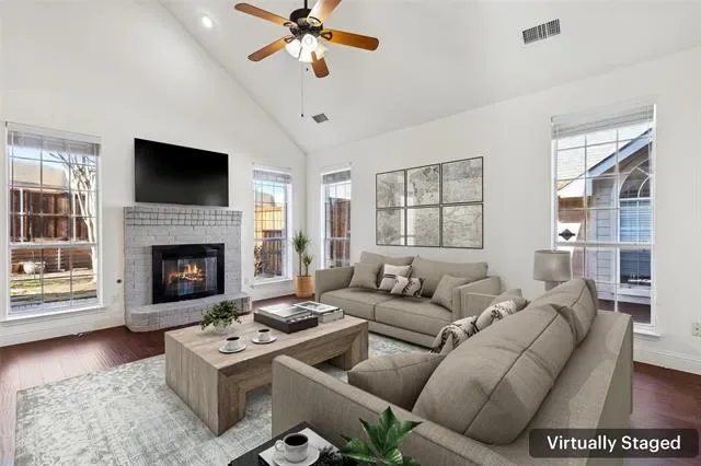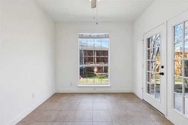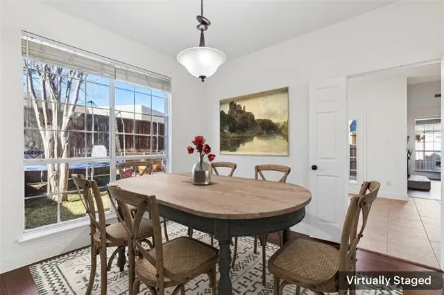 This beautiful home offers an open floor plan highlighted by a dramatic staircase beneath an impressive 18-foot entry ceiling, creating a striking first impression the moment you enter. Natural flow and generous living spaces make the layout both functional and welcoming for everyday living and entertaining. The spacious primary suite provides a private retreat, complete with a 9×8 sitting area that works perfectly as a home office, reading nook, or workout space. Upgraded bathrooms feature modern stand-in showers, adding a fresh, contemporary feel throughout the home. Extensive updates over the years provide peace of mind and modern appeal. Recent improvements include renovated full bathrooms and a refreshed half bath, updated kitchen cabinets with new hardware, fresh interior paint throughout, removal of popcorn ceilings, updated door hardware, and a beautifully stained hand railing along the entry staircase. Major system and maintenance updates include a replaced water heater, dishwasher, AC coil, plumbing valves, exterior paint, new blinds, improved backyard drainage, and fence and retaining wall repairs. Don''t miss the freshly painted garage with custom shelving! Ideally located near top-rated schools, including Donald Elementary STEM School, and just moments from the newly renovated Rheudasil Park, which features a scenic duck pond and walking trail and close to DFW Airport. This home blends thoughtful updates, flexible living spaces, and a highly desirable location—making it a standout opportunity ready to enjoy. 3D tour available online!