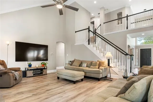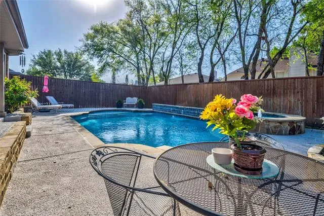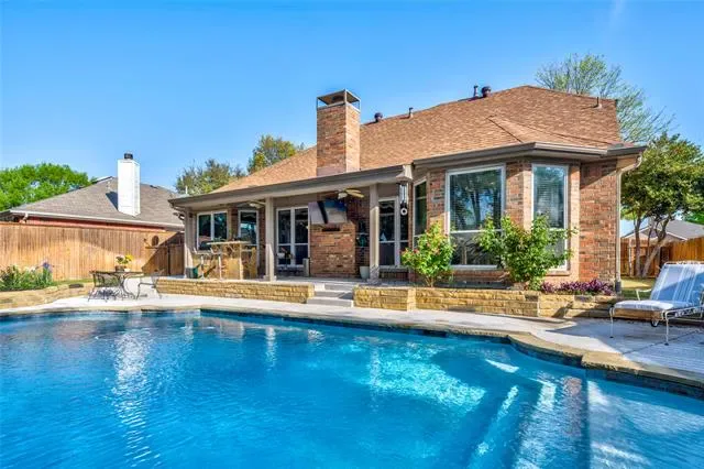 This beautifully maintained home offers a perfect blend of comfort, style, and thoughtful upgrades. The warm and inviting home has been meticulously improved to ensure both peace of mind and modern appeal. The spacious interior boasts soaring ceilings and an inviting layout designed for both everyday living and gatherings. Major system updates include a furnace replacement in 2016, new windows and foundation repairs in 2018, a new water heater and garage doors in 2019 and a new roof installed in 2021. Additional recent enhancements such as fresh interior paint, updated lighting, and modern ceiling fans in 2023 add a bright, refreshed feel throughout the home. Inside, you’ll find updated flooring (2021), a stylishly stone fireplace, and fully renovated bathrooms—including the primary, hallway, and upstairs baths—all completed in 2021 with contemporary finishes. The outdoor space is equally impressive, featuring a beautifully upgraded landscape, a newer fence (2020), and a private backyard retreat complete with a sparkling pool and attached spa. Pool equipment has been well maintained with a new salt cell added in 2024 and a new pool filter in 2025. An outdoor kitchen makes this space ideal for entertaining. Conveniently located near schools, parks, playgrounds, shopping, restaurants, entertainment venues, major roadways, and DFW Airport. This property truly stands out as a move-in-ready home with extensive updates inside and out, while offering the perfect combination for family comfort, convenience, and lifestyle.