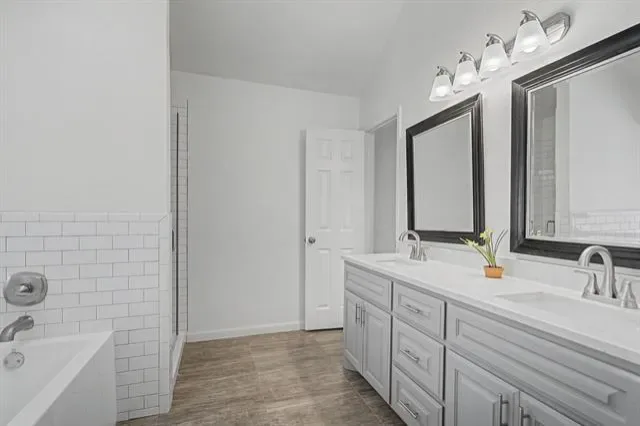Fully updated 3 bedroom, 2 bathroom home on a spacious corner lot in a highly desirable Flower Mound location! Light and bright paint throughout. You will love the updated kitchen with tall cabinets, plenty of pantry space and eat in kitchen. Warm wood flooring in entry, living and dining areas. Lovely split bedroom design gives kids their own space and privacy for primary suite. Primary suite features large closet, large soaker tub, double vanity and linen closet for extra storage. Great location and close to all that Flower Mound has to offer including short walk to trails and parks.
