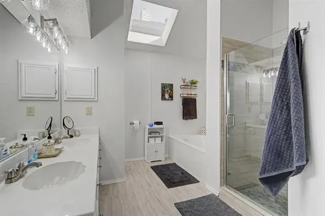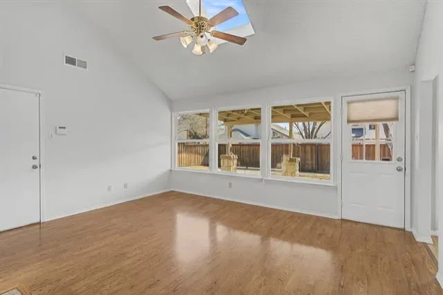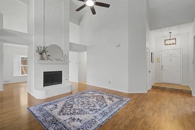 MULTIPLE OFFERS RECVD. DEADLINE MON, 3-2 AT 5PM. Beautifully updated one-story home nestled in a quiet, established South Flower Mound neighborhood zoned to Flower Mound High School. Mature trees and charming brick elevation create an inviting first impression. Step inside to soaring vaulted ceilings and abundant natural light that enhance the spacious feel throughout. Engineered wood flooring extends across the main living areas, where a beautiful painted brick fireplace anchors the primary living space and seamlessly connects to the dining area — ideal for both everyday living and effortless entertaining. A second living area, tucked just beyond the entry, features its own fireplace, skylight, and a wall of windows showcasing peaceful backyard views, creating a warm and versatile gathering space. Designed for both function and style, the updated chef’s kitchen showcases granite countertops, painted cabinetry, stainless steel appliances, gas cooktop, center island with storage, and an inviting eat-in breakfast nook. Boasting a desirable split-bedroom floorplan, the oversized primary suite serves as a private retreat with vaulted ceilings, updated shower, soaking tub, and expansive walk-in closet. Three additional bedrooms provide flexibility for guests, family, a home office, or hobby space. Step outside to enjoy the large backyard complete with an extended covered patio, electric gate for added privacy and secure parking, additional driveway space, and storage shed — perfect for entertaining, play, or extra vehicle access. Major updates include windows replaced within the last 10 years, HVAC system replaced in 2017, and fresh interior paint in 2026. With timeless design, thoughtful updates, and an unbeatable South Flower Mound location, this home offers the lifestyle today’s buyers are searching for — space to gather, room to grow, and a place you’ll truly love coming home to.
