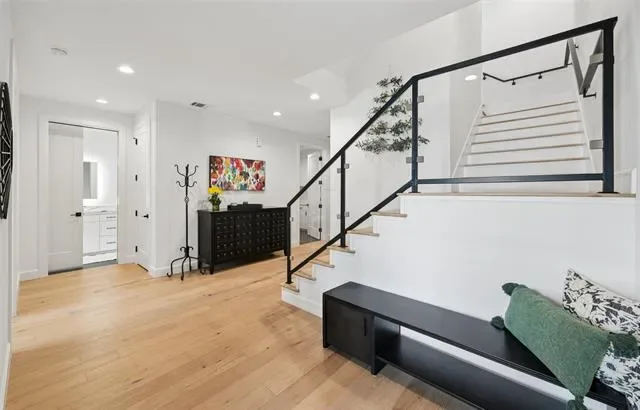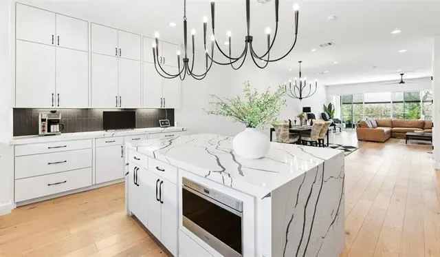 Absolutely stunning—spacious, refined, and an exceptional value you truly have to experience to appreciate. This remarkable mansion offers the perfect balance of peaceful seclusion and effortless convenience. From your private balcony, take in sweeping views of 4.5 acres of lush, wooded creekside preserve—a rare, tranquil setting that feels a world apart. Designed for those who value both luxury and ease, this custom townhome provides a seamless “lock-and-leave” lifestyle. Start your mornings on the scenic North Shore trails, relax at Lakeside Park, and spend evenings enjoying dining, live music, and vibrant community events just steps from home. Inside, like-new construction showcases elevated design without the wait for construction to finish not to mention those new high prices. Rich hardwood floors flow throughout, creating a warm, sophisticated ambiance. The chef’s kitchen is a showpiece, featuring gleaming high end countertops, a dramatic waterfall island, and generous space for entertaining and daily living. The wide open-concept layout connects kitchen, dining, and living areas for effortless flow. The romantic owner’s suite is a serene retreat, privately positioned for a true escape. Three additional bedrooms, each with its own ensuite bath, provide comfort and privacy for guests or family. Multiple living areas offer flexibility for work or relaxation, while abundant storage, dual laundry spaces, and three private balconies enhance everyday convenience. A pre-framed and wired space allows for a future elevator or added storage. Located in the highly sought-after Lakeside community, enjoy walkable access to more than 40 premier shops, restaurants, and entertainment venues, along with scenic highlights like Sunset Point, the Boardwalk, and the Lakeside Music Series plaza. Two championship golf courses are just minutes away, and quick highway access makes every destination easily within reach. A property this nice at this price does not exist. Come see it.
