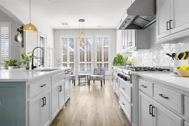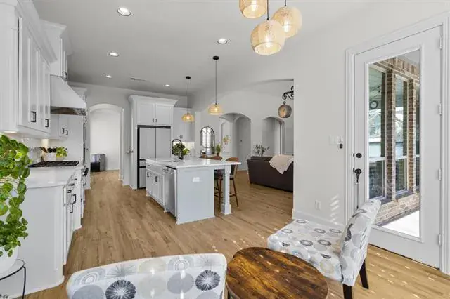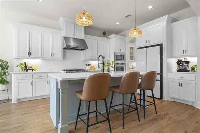 Set on a prime, north facing, corner lot in sought-after Lakeside, this stunning 5-bedroom, 4.5-bath home with a 3-car garage offers light-filled elegance, thoughtful updates, and exceptional space for both everyday living and entertaining. From the moment you step inside, soaring ceilings and abundant natural light create an airy, welcoming atmosphere. Recent updates elevate the home throughout, including new hardwood floors across the first floor, new carpet in the primary suite and 1st floor guest bedroom, fresh neutral interior paint, and a beautifully refreshed kitchen featuring new quartz countertops, updated lighting, repainted cabinetry, and new hardware. Storage is abundant with built-ins, generous closets, and cleverly tucked-away space beneath the stairs. The main level is designed for both function and flow, with a private office and formal dining room at the front of the home. The heart of the house opens to an expansive living, kitchen, and breakfast area, highlighted by walls of windows overlooking the backyard. The kitchen is a chef’s dream, complete with a 6-burner gas cooktop, vented exhaust fan, walk-in pantry, and butler’s pantry connecting to the formal dining room. The primary suite offers a peaceful retreat with separate vanities, a soaking tub, walk-in shower, and an oversized walk-in closet. A second downstairs bedroom, thoughtfully split from the primary, features a full bath just outside—ideal for guests or multigenerational living. Upstairs, enjoy a spacious game room, media room, and three additional bedrooms, each with walk-in closets and ensuite baths, plus a conveniently located half bath. Residents enjoy unmatched access to Lakeside amenities, including scenic lake trails, Rock Ledge Park (with special access code), a boardwalk to the trailhead, and a dog park—all just minutes from Lakeside shopping, dining, and entertainment, including the popular eat-in Moviehouse. This is Lakeside living at its finest.