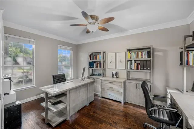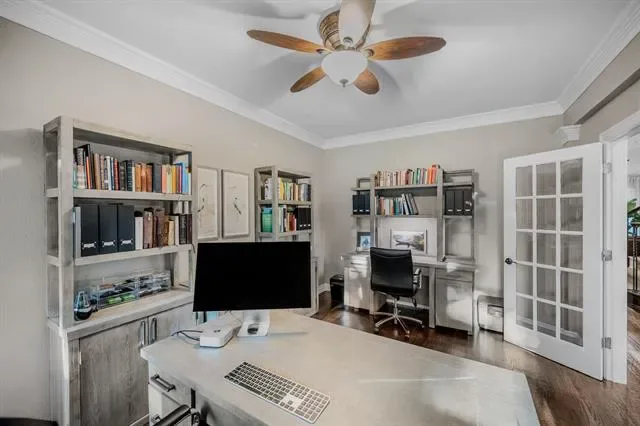 From the moment you enter, the home showcases timeless elegance and thoughtful design, highlighted by rich wood flooring and expansive living spaces curated for both everyday comfort and elevated entertaining. The gourmet island kitchen is appointed with granite countertops, a generous breakfast bar, and seamless flow into the inviting family room anchored by a striking fireplace. A private study framed by French doors offers a sophisticated work-from-home retreat or executive office.