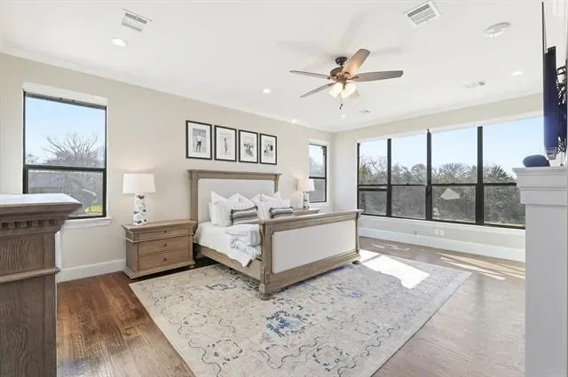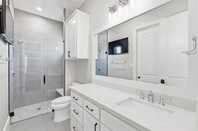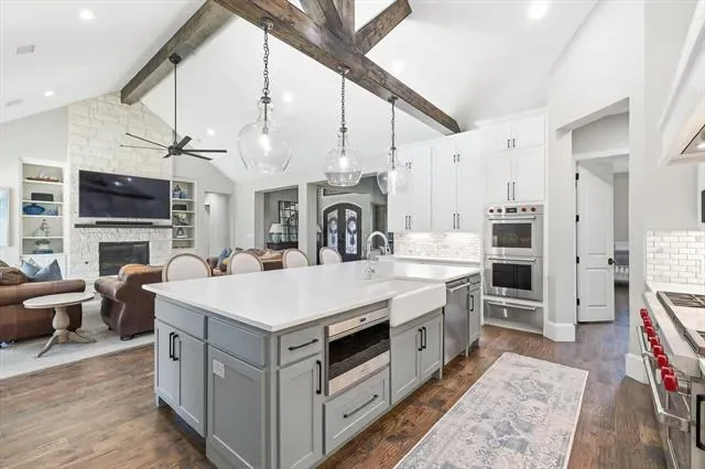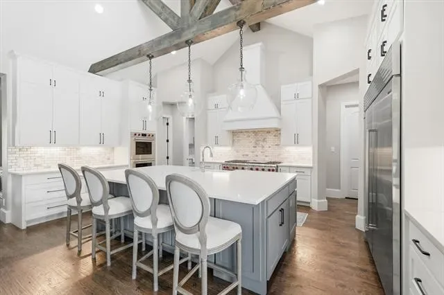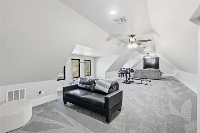 Stunning custom estate in Flower Mound offering 3.093 acres of private, unrestricted land with no HOA, just steps from Grapevine Lake, Merrill Park, and Twin Coves Marina. Built in 2021, this thoughtfully designed custom home combines modern construction with functional luxury. The main level features five bedrooms, each with access to a full bath, providing exceptional flexibility for families, guests, or multigenerational living. A well appointed chef’s kitchen anchors the heart of the home, designed for both everyday living and entertaining with generous workspace and seamless flow into the main living areas. Upstairs, an approximately 1,000 square foot bonus room offers versatile space for a game room, media room, or additional living area, complemented by a fully decked attic for abundant storage. Additional interior highlights include an oversized utility room and thoughtful details throughout that reflect the quality of a true custom build. The outdoor setting is equally impressive, featuring a resort-style pool and spa, expansive outdoor kitchen and living area, private pond, and dedicated RV or Boat parking. A 950 foot deep well supports irrigation and outdoor needs, while the four car garage provides ample space for vehicles, storage, or hobbies. Ideally located near shopping, dining, and exemplary schools, with DFW International Airport less than 10 miles away, this exceptional Flower Mound property offers privacy, acreage, modern construction, and access to North Texas lake living