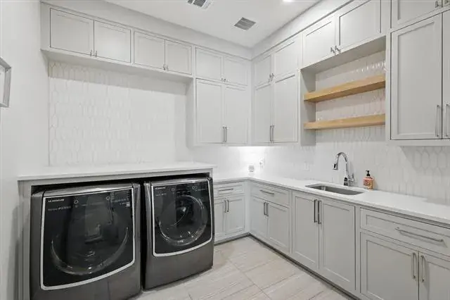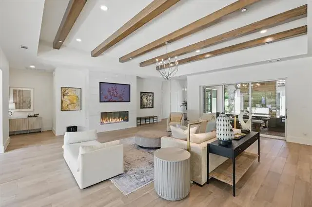 Luxury truly lives in the details of this exceptional custom home, tucked at the back of an exclusive gated community in Flower Mound and zoned to highly sought-after Argyle ISD. Situated on a one-acre lot, this estate was designed for everyday comfort and effortless entertaining. The open-concept kitchen and living area showcase soaring beamed ceilings and top-tier appliances including a Sub-Zero refrigerator, Wolf range, double ovens, and refrigerated drawers. A fully equipped prep kitchen with a second dishwasher, wine and a full size beverage and wine fridge, ice maker, and walk-in pantry keeps hosting seamless and organized. The primary suite feels like a private retreat with two walk-in closets, a personal gym with Tonal system, sauna, coffee bar with mini fridge, spa-inspired shower, and even an outdoor shower! Most of the living space is thoughtfully located on the first floor, including four spacious ensuite bedrooms with walk-in closets, a private office with its own bath that could serve as a sixth bedroom, and a den with built-in desks. Upstairs offers flexibility with a game room (complete with reading nook and murphy bed), kitchenette, full bath, and guest suite ideal for entertaining or multigenerational living. Outdoor spaces were equally prioritized with a front courtyard featuring a fireplace, dining space and water feature, then the backyard oasis complete with pool, spa, firepit, outdoor fireplace, and full outdoor kitchen with built-in grill and fridge. Additional highlights include a 4-car garage with HVAC, dog wash station and two EV chargers, whole-home Halo water filtration, smart home features, integrated SONOS system with TVs included, level 4 tile roof, two whole-home generators, and a pool with in-floor cleaning system and hard cover. Experience elevated living at its finest. Visit www.5017Castellano.com for photos, floor plan, and 3D tour.