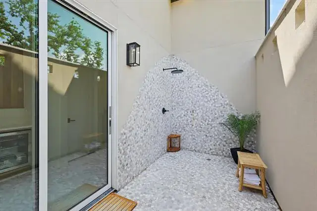 Attached Grill, Built-in Barbecue, Courtyard, Covered Courtyard, Covered Patio/Porch, Garden(s), Gas Grill, Rain Gutters, Lighting, Outdoor Kitchen, Outdoor Living Center, Outdoor Shower