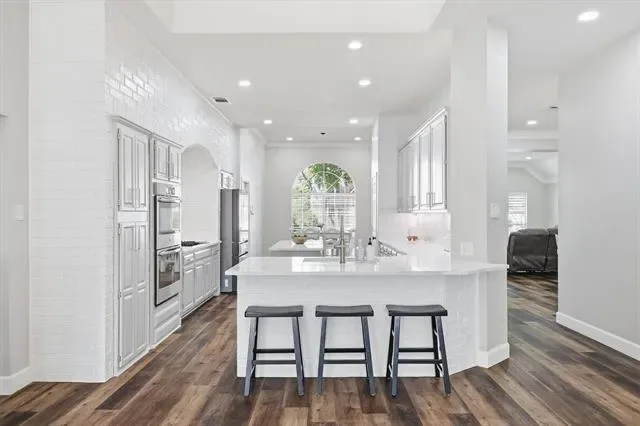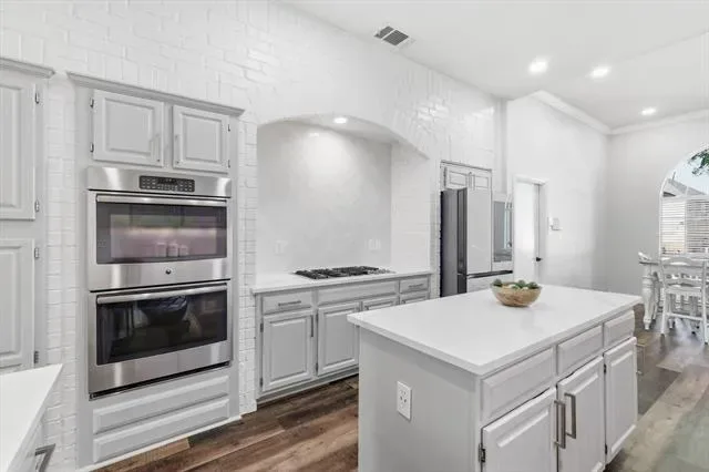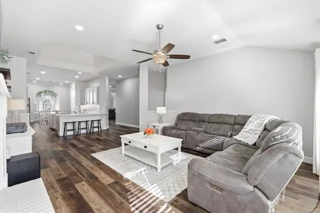 Tucked quietly on a peaceful cul-de-sac in the heart of Flower Mound, this beautifully updated 1-story home is where life slows down just enough for you to truly enjoy it. This is a home that has been deeply loved &' thoughtfully improved. You’re welcomed by warm, open spaces designed for both everyday living &' unforgettable gatherings. The heart of the home is the stunning, fully updated kitchen, complete with a charming brick accent wall, expansive island, abundant counter space &' soft under-cabinet lighting that creates the perfect glow for everything from busy school mornings to late-night conversations.It flows effortlessly into the main living area, making it easy to stay connected no matter where the day takes you.At the front of the home, a 2nd living space offers flexibility for your family’s rhythm,whether it becomes a cozy reading room,a play space,or the perfect spot to host friends &' holidays.With 3 or 4 bedrooms,this home adapts to your season of life.The current owners have created a 4th bedroom,but the space can easily transform into a home office, craft room, game room, or quiet retreat, whatever your family needs most right now.The primary suite is complete with a spa-like ensuite bath.Split secondary bedrooms provide comfort &' privacy for everyone,creating a layout that truly works for growing families or multi-generational living.And then there’s everything you don’t immediately see,but absolutely feel:the care,the upgrades,the intention.From the insulated garage, to the tankless water heater (2024), fresh sod (2025), &' fresh paint (2026), every detail has been considered so you can simply move in &' start living. Step outside &' imagine evenings under the Texas sky with a 220-volt outlet already in place for your future hot tub. Zoned to highly sought-after FM schools, this home offers more than just a place to live, it offers a lifestyle. A place where bikes ride a little slower, neighbors wave a little longer &' memories are made every single day.