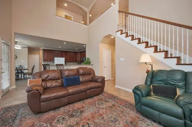 This beautifully maintained home offers a spacious and inviting floorplan with soaring vaulted ceilings that create an open, airy feel throughout. The kitchen is designed for both everyday living and entertaining, featuring granite countertops, a center island, breakfast bar, and a cozy breakfast area. Upstairs, a large living room provides the perfect space for a game room, media area, or second gathering space. The primary suite is a relaxing retreat with wood flooring, dual vanities, a jetted tub, separate shower, and a generous walk-in closet. Step outside to enjoy the backyard, complete with an extended patio ideal for outdoor dining, a storage shed, and mature trees that add shade and character. Located within sought after Lewisville ISD, this home is ideally positioned near Timber Creek Park and Spring Lake Park, with convenient access to a variety of shopping, dining, and everyday amenities. Meticulously maintained and move-in ready, this home is an exceptional opportunity you won’t want to miss. Schedule your showing today.