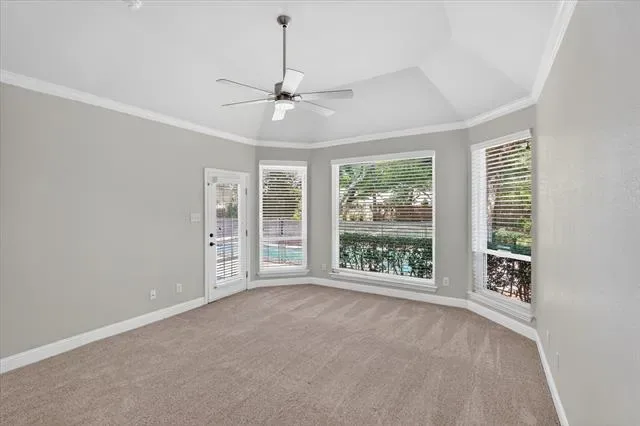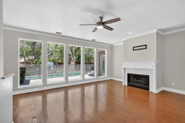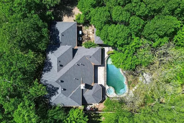 Stunning, spacious home in a prime location! Rare opportunity in Pecan Park Estates—a quiet, single-street community offering privacy and charm. Situated on an impressive .43-acre lot surrounded by gorgeous mature trees, this property delivers the perfect blend of indoor comfort and outdoor living. The backyard is an entertainer’s dream, featuring a gated pool and spa, expansive grassy area, and an incredible outdoor living center complete with a stone fireplace, built-in grill, cabinetry, vaulted wood ceiling, and ample seating space—ideal for year-round gatherings. Inside, you’ll find a beautifully updated interior with warm wood flooring, fresh paint, arched doorways, crown molding, and modern light fixtures. The spacious kitchen is equipped with granite countertops, dual ovens, a 6-burner gas cooktop, abundant cabinetry, and a sunny eat-in dining area. The light-filled living room showcases high ceilings, fireplace, and a wall of floor-to-ceiling windows overlooking the backyard. The tranquil primary suite offers private access to the outdoors and serene views, along with a fully remodeled spa-like bathroom featuring a custom vanity and a luxurious wet room with a soaking tub and walk-in shower, plus marble finishes throughout. The main level also includes a dedicated office with built-ins, formal dining and living spaces, and a convenient half bath. Upstairs, enjoy fresh carpet, updated bathrooms, a spacious game room, and three additional bedrooms—one with an ensuite bath and two connected by a Jack-and-Jill bathroom. A walk-in attic with built-in shelving provides exceptional storage. Designed for both everyday living and unforgettable entertaining, this home is the perfect retreat for Texas summers and beyond!