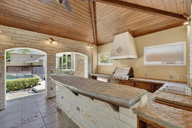Attached Grill, Barbecue, Covered Patio/Porch, Rain Gutters, Outdoor Grill, Outdoor Kitchen, Outdoor Living Center, Private Yard