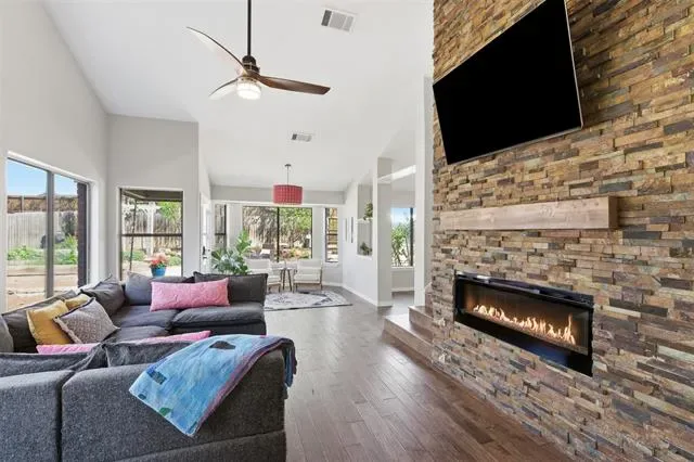 OFFER DEADLINE SET FOR MONDAY, MARCH 30, AT 5:00PM. Welcome home to this charming, thoughtfully updated home nestled in the established Prairie Creek subdivision and perfectly situated directly across from Colony Park! From the moment you step inside, you’re greeted by warm hardwoods, an open-concept floor plan and a stunning wall of windows that flood the main living spaces with natural light. The oversized living room, dining area, and cozy den provide flexibility and comfort, ideal for hosting gatherings or enjoying quiet evenings at home. The kitchen is designed with the home chef in mind, featuring abundant cabinetry, stainless steel appliances, granite, and additional storage in the nearby laundry room— ensuring everything has its place. The downstairs primary suite offers a private retreat, complete with dual closets and an updated ensuite bath, along with a convenient half bath for guests. Upstairs, you’ll find three generously sized bedrooms and another full updated bath, providing ample space for family, guests, or a home office setup. Step outside to a backyard that looks and feels like a living sanctuary with a gleaming greenhouse at its heart, and cradled by layers of emerald foliage and blossoms in every shade, creating a serene, ever-blooming haven that any gardener would treasure. Feeding in to Flower Mound schools and conveniently located right across the street from the park, this home offers the perfect blend of comfort, updates, affordability, location, and charm! Come fall in love!