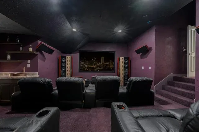 Enjoy a fully equipped media room with Sony 4K projector, Marantz processor, 9.3 surround sound, and wet bar. A dedicated gym includes treadmill, weights, Echelon Mirror, bike, and rowing machine.