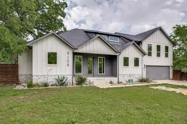 This stunningly remodeled Modern Farmhouse is talk of the neighborhood. Located just two blocks from the lake in highly desirable Flower Mound, this home turns heads with its curb appeal &' charm. People slow down just to take a second look! Set in a quiet, tight-knit community that backs to Corps of Engineer land, enjoy direct access to scenic hiking &' biking trails, plus a private neighborhood boat ramp for days on the lake. Inside, you’re welcomed by a spacious open floor plan with soaring 10-foot ceilings &' wood flooring throughout the main level. The downstairs primary suite is a peaceful retreat, complete with a private patio shaded by a majestic oak tree &' an ensuite straight out of a magazine. A precious office located across from the master makes remote work a breeze. A large bonus space off the kitchen that can be used as a formal dining room, game room, extra living room…wherever your imagination takes you. The open kitchen design boasts beautiful granite countertops, stainless steel appliances, stylish lighting, &' a perfect layout for hanging out. Upstairs, a spacious loft connects two secondary bedrooms and a large bath—perfect for family or visitors. There''s even a cute mud room cutout by the garage. Seller absolutely loved this home &' neighbors – come see why. Recent upgrades: