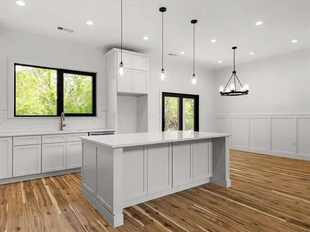 Chandelier, Decorative Lighting, Double Vanity, Flat Screen Wiring, Granite Counters, High Speed Internet Available, Kitchen Island, Natural Woodwork, Open Floorplan, Paneling, Pantry, Smart Home System, Vaulted Ceiling(s), Wainscoting, Wired for Data