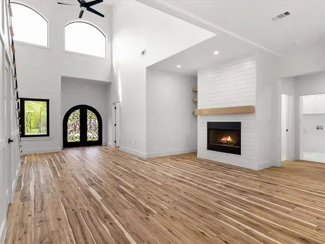 New Construction completed March 25, 2026! No HOA! Appraised 4-2-2026 by WP Appraisers 2801 Network Blvd Frisco, TX 75034. You Can Build a POOL! You Can Build An Outdoor Kitchen! Modern Barndominium within walking distance of Lake Grapevine in highly desired Flower Mound, Tx. Built in 2026! This home turns heads with its curb appeal & charm. Set in a quiet 75 acre, tight-knit community that backs to Corps of Engineer Land. Enjoy direct access to hiking and biking trails. Inside, you’re welcomed by a spacious open floor plan with soaring 22ft ceilings. Downstairs has Double Master Peaceful Suites with Full Spa like Bathrooms. Front and back patio-porch shaded by tall oak trees straight out of a magazine. Upgrades include – Retaining Wall, 31 Pier Foundation, European Style Windows That Open and Tilt, Tesla Charger, All Closets Are Custom, Custom Trim Walls and Windows, Schlage Matte Black Door knobs, Elongated Toilets, 6ft Bathtubs, 24×48 porcelain Bath Tile, Sound Proof Walls, Modern Rail System, Office – Flex – Playroom, All Wood Cabinets with Soft Close, 36in Stove Range, Double Oven, Quartz Counter Tops, Rigid Luxury Vinyl Floors 30yr waterproof, Wired For Cat 6, State of the Art Turner 500 Gallon Per Day Septic System, Sprinkler System, Wood Burning Fire Place.