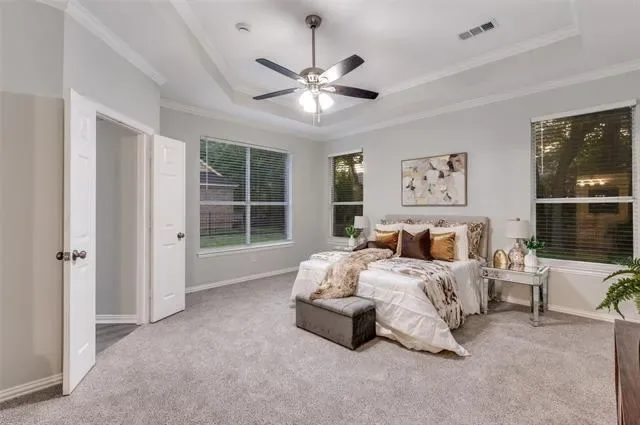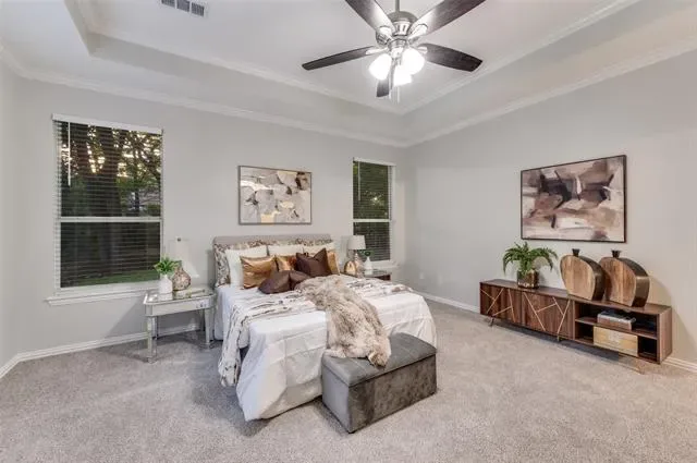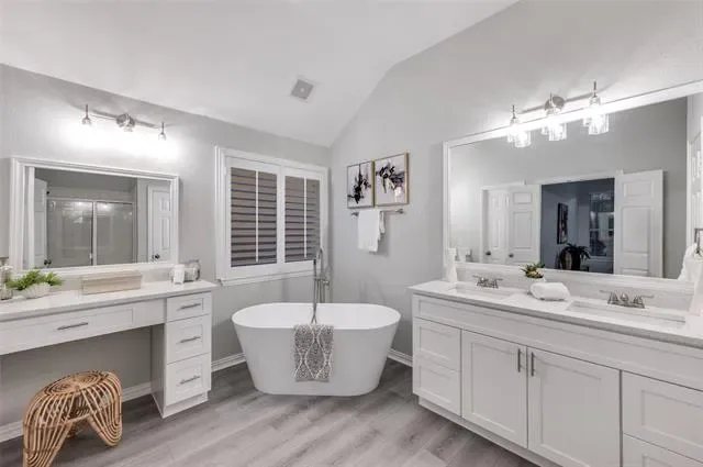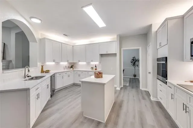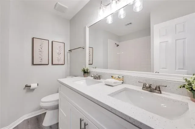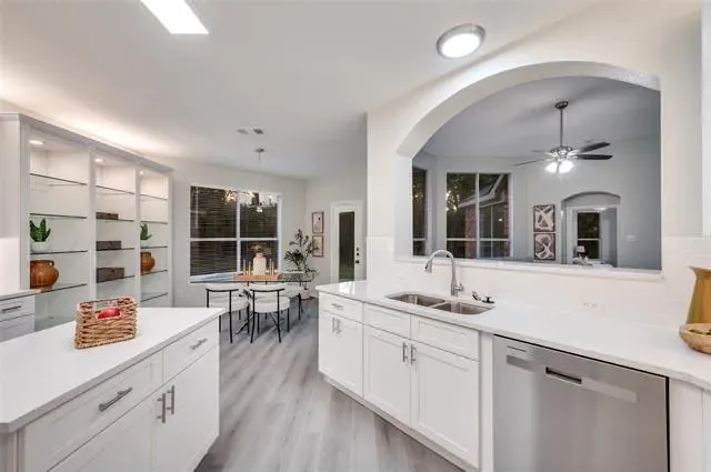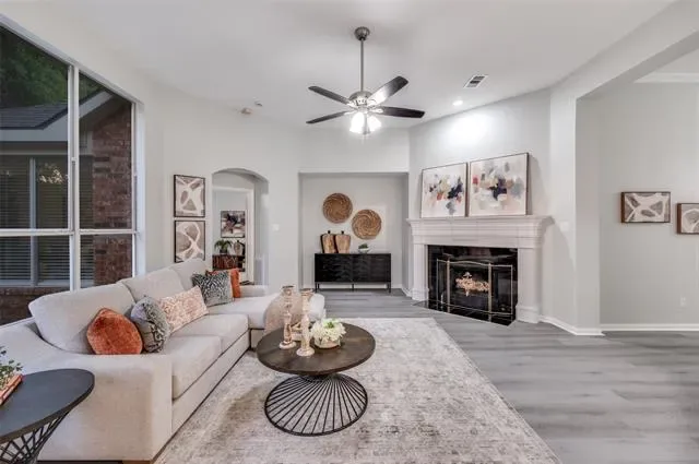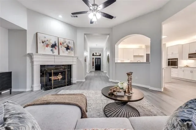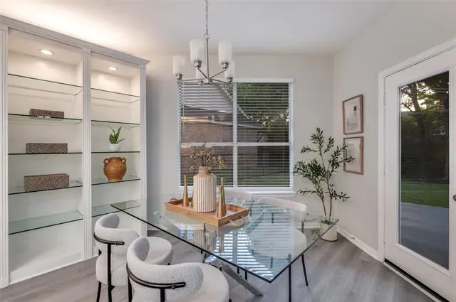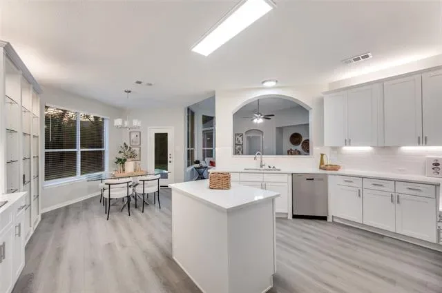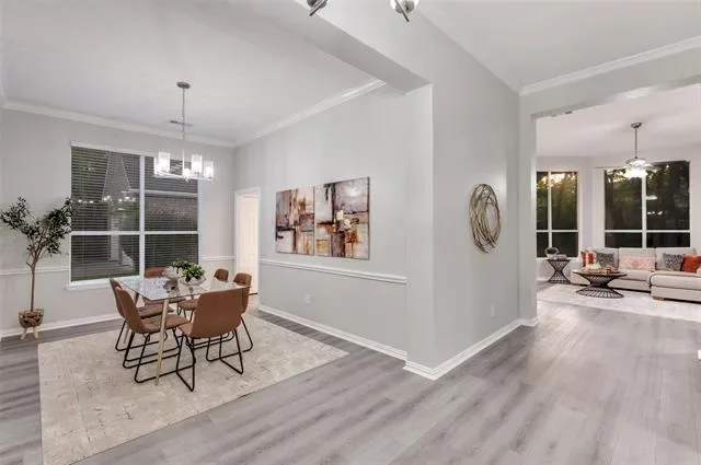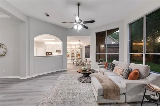 You’ll feel right at home the moment you step inside this beautifully updated one-story residence in the heart of Flower Mound. This inviting 2,305 sq ft home blends modern living with timeless charm in one of North Texas’s most sought-after communities. The bright, open layout feels spacious and welcoming, with fresh updates throughout that make it move-in ready. You’ll love the new quartz countertops, brand-new paint and flooring, and the thoughtfully updated kitchen and bathrooms. Tall ceilings add an airy, luxurious feel — perfect for relaxing after a long day or hosting friends and family. Out back is where this home really shines. The large, green backyard is framed by a simple metal fence that gives you an unobstructed view of the mature trees lining the back. Those trees provide wonderful shade and a peaceful, park-like setting that feels surprisingly private. Whether you’re firing up the grill for summer barbecues, letting the kids or dogs run around, or just enjoying your morning coffee in the quiet, this yard offers the kind of outdoor space that’s hard to find. If you’re looking for a comfortable, updated home with a big, tree-shaded backyard in a great Flower Mound location, this one is worth seeing.