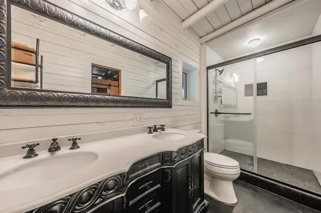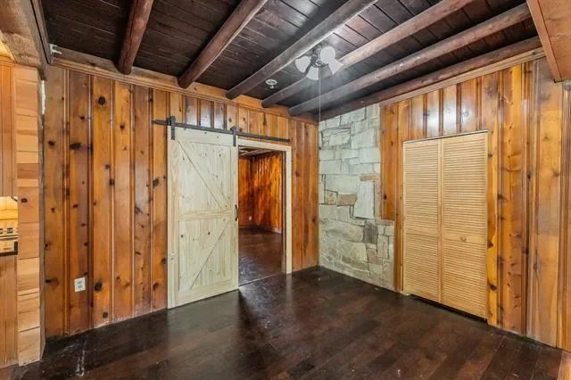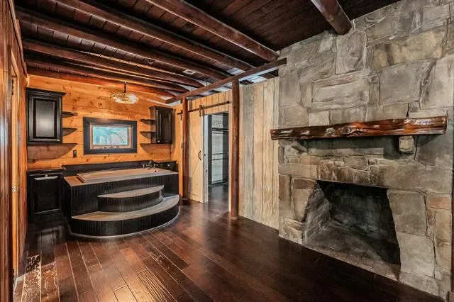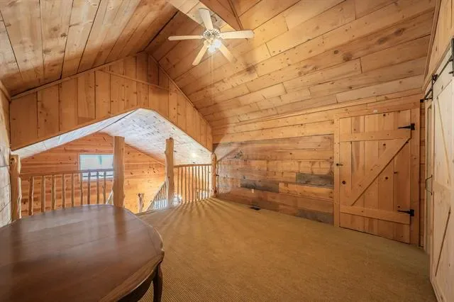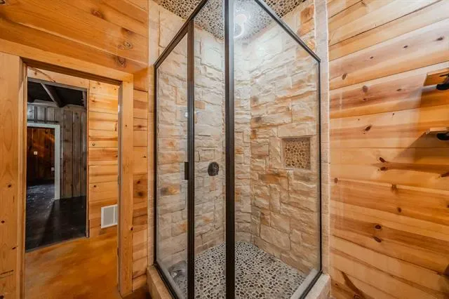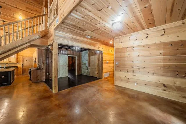 Inside, a grand staircase with natural wood rails leads to an open floor plan with soaring vaulted ceilings. The completely custom kitchen boasts a massive granite island, custom cabinets, breakfast bar, and a spacious breakfast nook. Unique pine, spruce, and cedar wood accents throughout the home add warmth and character. At the heart of this property lies the original 1950s cabin, transformed into a luxurious master retreat with a large soaking tub, walk-in tiled shower, and cozy fireplace. The rest of the home, thoughtfully built around the original structure in 2010, blends historical charm with modern comforts. The spacious living room features a striking stone fireplace, while the first floor also includes a guest bedroom and full bath. Upstairs, a loft leads to an additional bedroom and a massive walk-out attic, fully insulated and ready to convert into a fourth bedroom, office, or flex space. Located just minutes from the Lakeside area, this home offers easy access to restaurants, shopping, boutiques, coffee shops, and major highways. Zoned for the highly sought-after LISD, including Flower Mound High School, this exceptional property is truly a rare gem. Don’t miss your chance to make it yours!