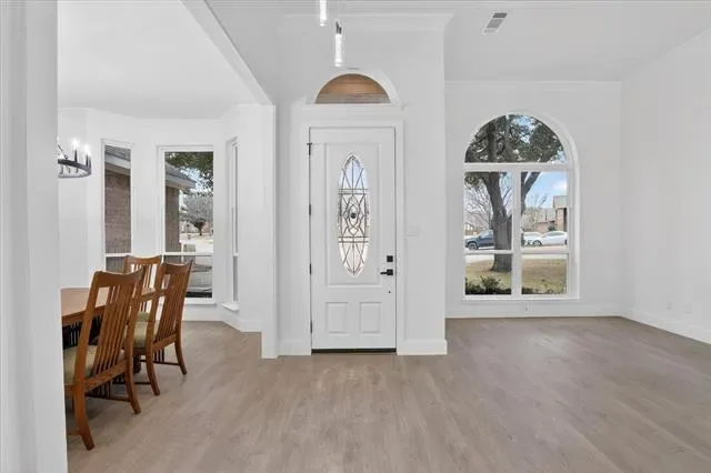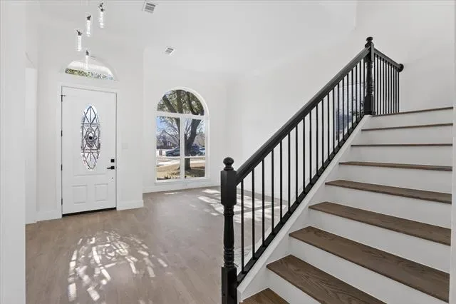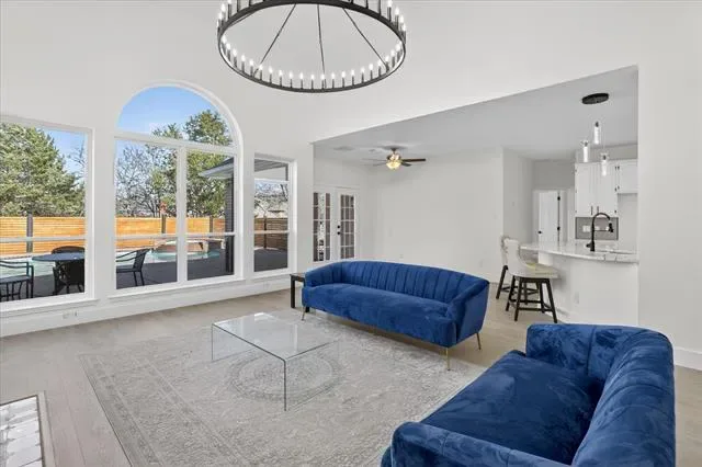 Experience a total 2026 transformation in this stunning 3,178 sq. ft. turn-key masterpiece. Zoned for top-rated Flower Mound High, every inch of this residence has been meticulously reimagined, featuring a dramatic vaulted entryway with a high-contrast contemporary staircase and wide-plank flooring. Unique to the neighborhood, the floor plan has been expanded to a rare 4-bedroom, 3.5-bathroom configuration, complemented by a dedicated media room with a sleek wet bar for ultimate entertaining. Designer LED halo lighting and a massive minimalist chandelier accent the open living spaces, while the massive backyard oasis offers a sparkling pool and spa with a brand-new safety fence and modern horizontal privacy fencing. This home offers the space of a private estate with the sophisticated elegance of a new build—all in an established, coveted community. Do not miss this rare opportunity.