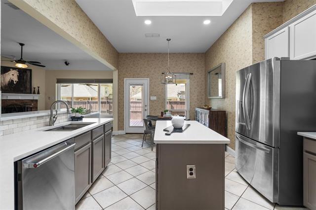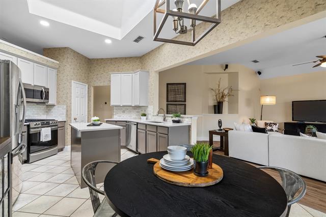 Welcome home! Situated on a quiet cul-de-sac in Flower Mound’s desirable Sherwood Estates neighborhood, this beautifully maintained home offers thoughtful updates and access to highly sought-after Flower Mound schools. Step inside to discover fresh interior paint, updated flooring, and new baseboards that create a bright and inviting atmosphere throughout. The kitchen shines with upgraded countertops, a stylish backsplash, an updated sink, and new appliances, perfect for both everyday living and entertaining. 4th bedroom can also be a perfect office. The spacious living area is anchored by a cozy gas log fireplace, creating the ideal place to relax and gather. This home also features several important upgrades that add comfort and peace of mind, including replaced windows, a new roof, radiant barrier attic insulation, and a dual-power solar and AC attic exhaust fan designed to improve energy efficiency. The hot water heater has also been recently replaced. Step outside to enjoy the backyard retreat featuring a covered deck, ideal for relaxing evenings or hosting friends and loved ones. Located in the established Sherwood Estates subdivision of Flower Mound, this home offers the perfect combination of updates, comfort, and location with convenient access to parks, shopping, dining, and everyday amenities.