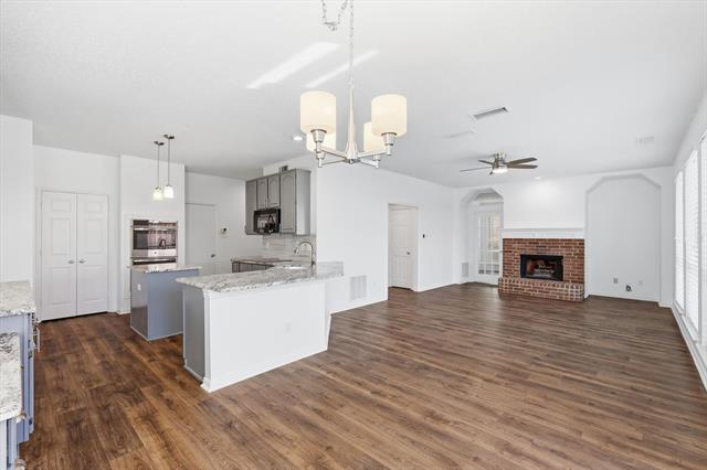 Welcome to this beautifully maintained 4-bedroom, 3-bathroom home in the heart of Flower Mound, where comfort, space, and thoughtful updates come together seamlessly. Fresh interior paint and meticulous care throughout make this home truly move-in ready. The updated kitchen is designed to impress, featuring double ovens, a microwave that also functions as a convection oven, abundant prep space, and an ideal layout for both everyday living and entertaining. Multiple living areas provide exceptional versatility, offering endless possibilities for a game room, media room, playroom, or elegant formal living space. A dedicated area for a private home office makes working from home both convenient and comfortable. Step outside to your own private backyard retreat featuring a heated pool and spa, perfect for relaxing evenings or hosting unforgettable gatherings with family and friends. This home also features updated windows, newer HVAC systems, two gas-burning fireplaces, and two attic spaces providing generous storage. The roof, gutters, and leaf guards are only a few years old, offering added peace of mind for years to come. Located in a highly desirable, family-friendly neighborhood, this home offers the space, comfort, and lifestyle today’s buyers are looking for. With plenty of room to entertain both indoors and out, this property is truly a must-see.