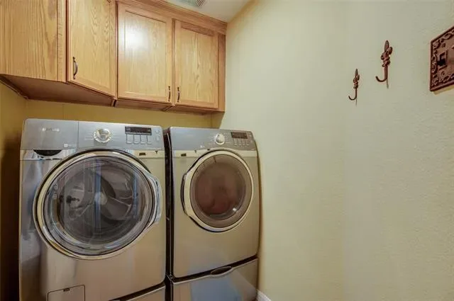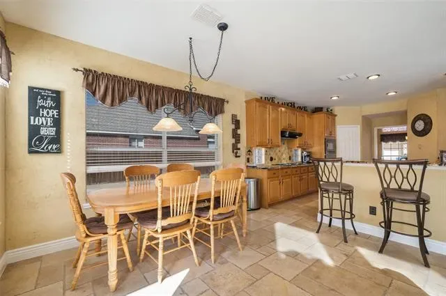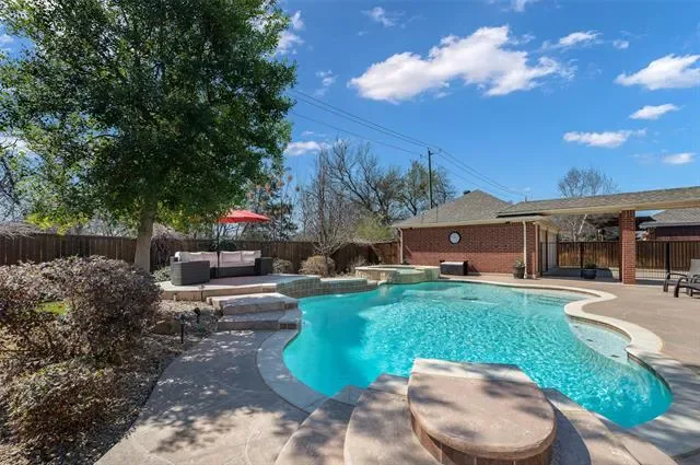 Step outside to a peaceful backyard retreat backing to mature trees, for exceptional privacy and serenity. Enjoy the beautiful pool and spa, plus a fully equipped outdoor cooking area complete with a new 5-burner gas grill and electrical outlets — ideal for entertaining. Retractable shades provide comfort on warm Texas afternoons, and in warmer weather, enjoy flowering crepe myrtles and vibrant trumpet vines that line the fence, adding color and charm throughout the seasons. Home has a three car garage with epoxy floors and plenty of additional parking space. The neighborhood has a park and a community pool, the perfect opportunity to meet neighbors and new friends.