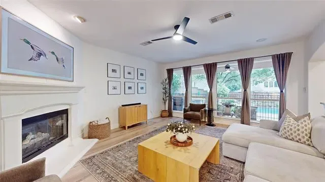 Nestled beneath mature trees on a large corner lot, this inviting home blends comfort, space, and charm at every turn. A cozy front porch sets the tone, welcoming you into a light-filled interior where abundant natural lighting and walls of windows create an airy, open feel throughout. Designed with both everyday living and entertaining in mind, the spacious family room offers the perfect gathering space, while a dedicated home office provides flexibility for remote work or study. Upstairs, a large game room adds even more room to relax or play – complete with a floored attic room for additional storage. With 4 generously sized bedrooms and 2.5 baths, this home offers a functional layout suited for a variety of lifestyles. Step outside to your own private backyard oasis, complete with a sparkling pool and spa, a covered patio for shaded lounging, and an additional pergola-covered seating area—ideal for entertaining year-round. A storage shed adds extra convenience for tools and equipment and 8ft fencing provides added privacy. This incredible property combines indoor comfort with outdoor enjoyment, all in a beautiful setting surrounded by established trees.