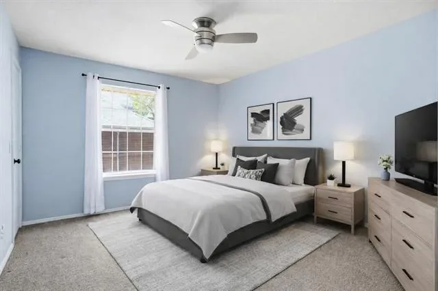 Beautiful one-story ranch style home in the heart of the Metroplex with quick access to DFW Airport. This 4-bed, 3-bath split-bedroom floor plan is ideal for generational living, offering a private bedroom and full bath on its own side of the home. Two living areas and two dining areas provide flexible space for cohabitating households. The updated kitchen features granite countertops, double ovens and breakfast bar, wood-look tile floors throughout area are neat and easy to care for. A wall of windows fills the home with natural light and offers peaceful views of the trees.