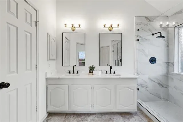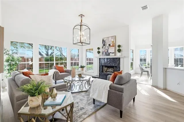 Tucked away on a prime cul-de-sac lot in south Flower Mound and within walking distance to popular Tealwood Oaks park, this beautifully updated single-story home offers space, flexibility, and modern style throughout. The thoughtfully designed open-concept floor plan features four true bedrooms plus a dedicated study, with generously-sized rooms and walls of windows that flood the home with natural light. The layout provides exceptional versatility, offering both a formal dining room and a spacious breakfast room. The breakfast area is large enough to serve as the primary dining space, allowing the formal dining room to easily function as a secondary living area, game room, or lounge. Extensive updates make this home truly move-in ready, including fresh interior and exterior paint (including cabinetry and millwork), updated flooring, modern lighting and plumbing fixtures, quartz countertops in the kitchen and bathrooms, double ovens, sleek cooktop, dishwasher, disposal, beautiful tile work throughout, refreshed landscaping, and updated garage doors and openers. The oversized primary suite is a private retreat featuring double closets and an updated ensuite bathroom with double sinks, and an enormous walk-in shower with seamless glass and dual shower heads. Situated on an oversized lot, the backyard offers a covered patio perfect for relaxing or entertaining — with plenty of room to add a pool while still maintaining generous yard space and no back neighbors. A rare opportunity to own a fully updated single-story home in one of south Flower Mound’s most desirable locations, nearby loads of dining, shopping and 1 mile from the Flower Mound Hound Mound dog park and Community Activity Center where you can enjoy the fully equipped fitness floor and weight room, year-round indoor pool, and seasonal outdoor water park with thrilling slides, a lazy river, and play structure. Don''t miss this home!