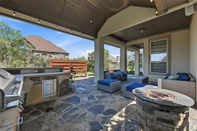 Attached Grill, Barbecue, Built-in Barbecue, Covered Patio/Porch, Rain Gutters, Lighting, Outdoor Grill, Outdoor Kitchen, Outdoor Living Center