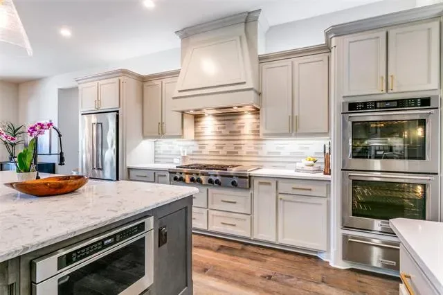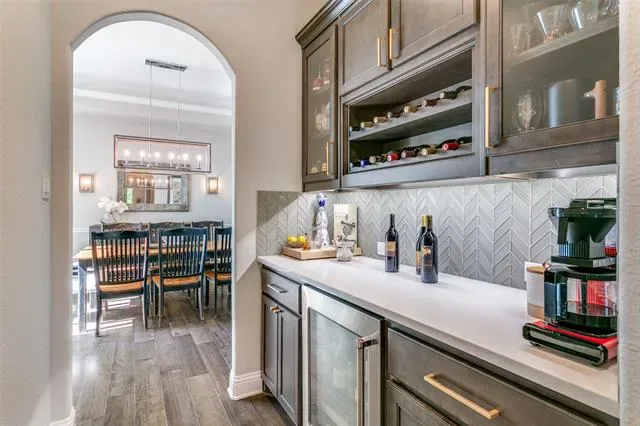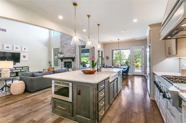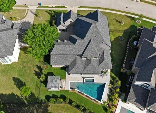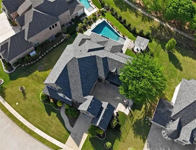Situated within the prestigious Terracina community near the Shops of Highland Village, this beautifully designed home epitomizes sophisticated luxury and effortless elegance. Perfectly positioned on a premium lot backing to tranquil green space and scenic walking trails, the home offers both privacy and picturesque surroundings. Thoughtfully designed with impeccable attention to detail, the residence features 5 bedrooms and 6.5 baths, including a private first-floor guest suite ideal for guests or multi-generational living. Each generously proportioned bedroom is complemented by its own private bath, creating a true sense of comfort and exclusivity. A gated porte-cochère enhances the home’s impressive arrival, offering covered access and accommodating three-car parking, blending convenience with refined architectural appeal. At the heart of the home lies a designer chef’s kitchen, beautifully appointed with a 6-burner gas cooktop, premium KitchenAid appliances, double ovens, and butler’s pantry with wine fridge offering modern convenience. The upper level boasts a large game room, dedicated media room, and a stylish wet bar, creating the perfect setting for hosting and leisure. The primary retreat is a serene sanctuary, showcasing a spa-inspired bath and dual walk-in closets designed for elevated living. Outdoors, a resort-style backyard oasis awaits, complete with an expansive covered patio with remote screens, fully-equipped outdoor kitchen, and a sparkling pool and spa—perfect for both grand entertaining and private relaxation. Blending timeless design with modern luxury, this exceptional property offers an unparalleled lifestyle in one of the area’s most coveted enclaves.
