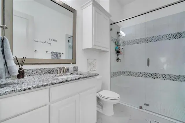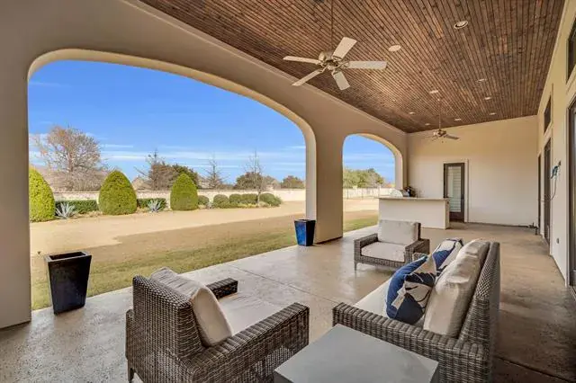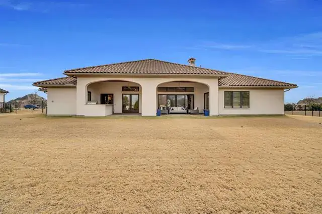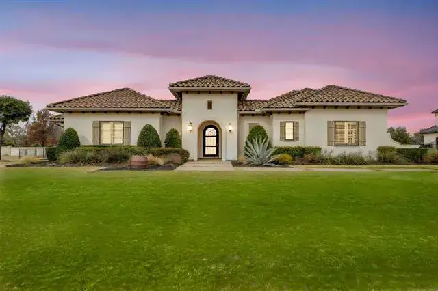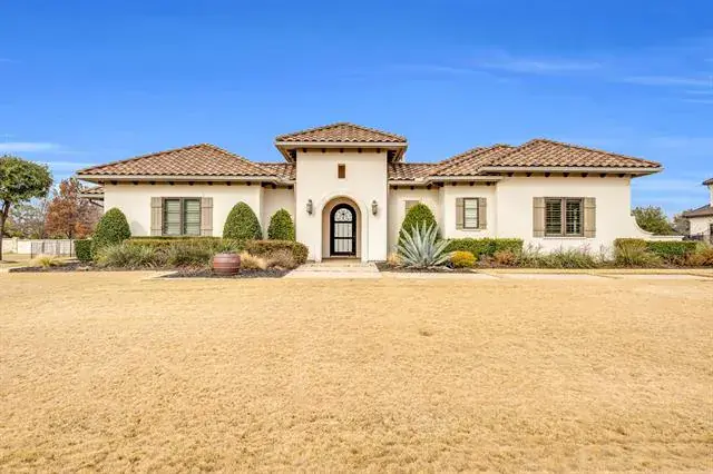 Exquisite single-level estate nestled inside the private, gated enclave of Chateau Du Lac’s most exclusive section, The Enclave. This custom-built residence offers a rare luxury living, designed with an open-seamless layout that blends sophistication and comfort. From the moment you arrive, the home impresses with its elegant courtyard entry featuring a cozy fireplace, a perfect setting for entertaining! The chef’s kitchen is both striking and functional, anchored by a 6-burner gas range, built-in refrigerator, oversized island, granite surfaces, and custom 42in cabinetry, ideal for entertaining on any scale. Every bedroom is a private en-suite, ensuring privacy for family and guests alike, while the owner’s retreat feels like a five-star spa with a soaking tub, frameless walk-in shower, dual granite vanities, and a custom-designed closet. A separate fifth bedroom with its own entrance offers an exceptional guest or in-law suite option, and the media room is pre-wired for 7.1 surround sound for an immersive experience. Outdoor living is equally impressive with multiple covered patios, an outdoor kitchen, and a spacious backyard that invites endless possibilities. High-end finishes throughout include hand-scraped hardwood floors, crown molding, 8’ solid-core doors, elegant baseboards, and a stunning cast-stone fireplace. Recent updates such as freshly painted stucco, recent driveway finish, and epoxy-coated garage floors. Energy-conscious features like a tankless water heater, radiant barrier roof decking, Low-E3 windows, a 16-SEER HVAC system, and a pre-wired security system provide peace of mind and efficiency. Professionally landscaped grounds framed by wrought iron fencing and accented by cedar garage doors complete this move-in ready estate. Truly a rare opportunity to own a luxury single-story home in one of Flower Mound’s most prestigious communities. Across the street the street from a catch-and-release pond for fishing enthusiast.