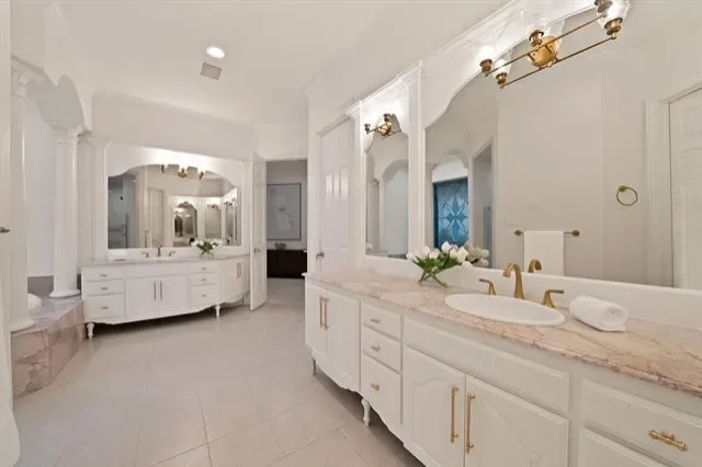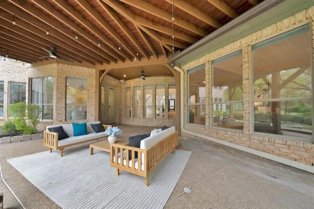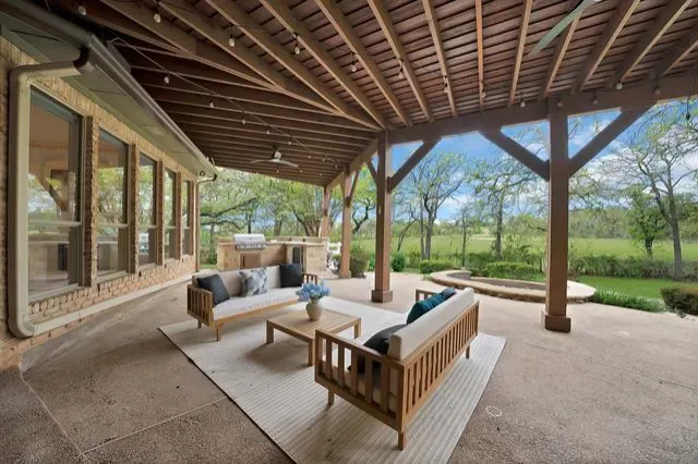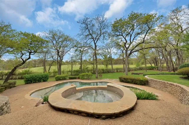 Architecturally grand and undeniably picturesque, this exceptional estate makes a statement at every turn. Nestled within the prestigious, 24-hour guarded gates of the Tour 18 community in Flower Mound, this home offers the perfect blend of luxury, privacy, and scenic beauty. Tucked away on a quiet cul-de-sac and ideally positioned between the 14th and 15th fairways of the renowned Tour 18 Golf Course, the setting is as remarkable as the home itself. Offering over 7,000 square feet of thoughtfully designed living space, this residence features 5 spacious bedrooms, 4 full bathrooms, and 2 half baths. From the moment you enter, you’re greeted by natural light, cathedral ceilings, and architectural details including custom built-ins, intricate trim work, and crown molding. The open-concept layout connects multiple living areas, each enhanced by its own fireplace, creating comfort and sophistication throughout. Recent updates include refreshed paint, updated flooring, upgraded bathrooms, and new countertops and backsplash in the kitchen—blending timeless design with modern finishes. The primary suite is a true retreat, offering generous space, a cozy fireplace, a private lounge area, and a luxurious ensuite designed for relaxation. A dedicated media room adds the perfect touch for entertainment. Step outside to your own private backyard oasis, surrounded by mature trees for seclusion. Enjoy a resort-style experience with a saltwater pool, hot tub, water features, and a fully equipped outdoor grill area. A private deck provides breathtaking golf course views. Additional highlights include a 4-car garage and a drive-through carport. Located within Argyle ISD and just minutes from Liberty Christian School, DFW Airport, Texas Motor Speedway, plus premier dining and shopping, this home offers luxury and convenience in one extraordinary package. *Square footage corrected to reflect heated living area only' garage previously included.*