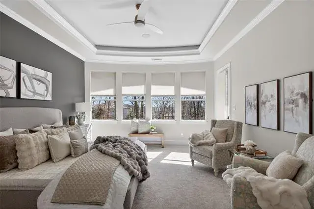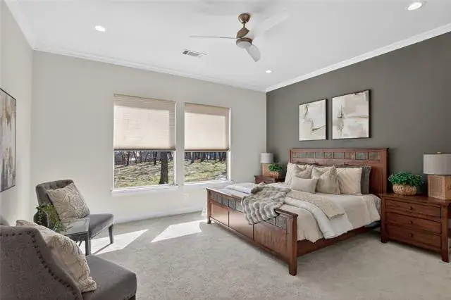 A stately presence and expansive 3-car garage set the tone for what awaits inside. The entire interior has been freshly painted, creating a light, bright, aesthetic enhanced by expansive windows that flood the home with natural light. New flooring adds warmth and sophistication throughout the main living areas.