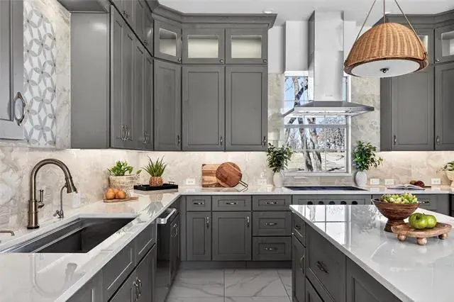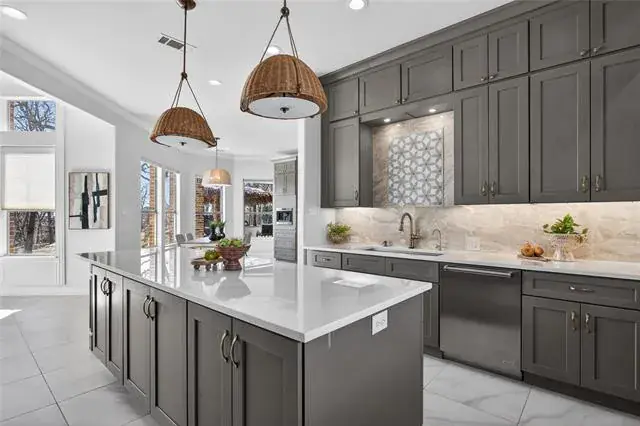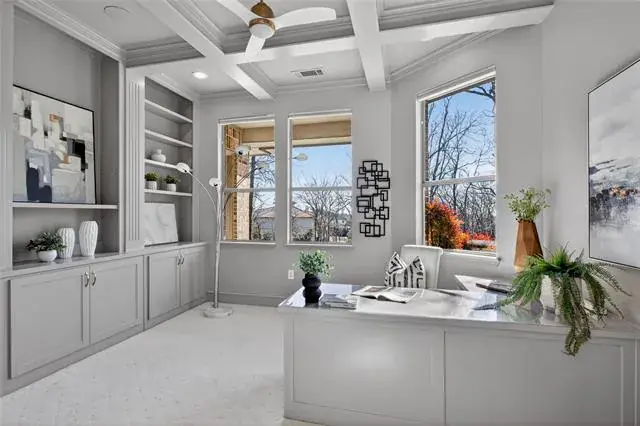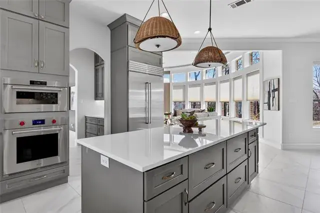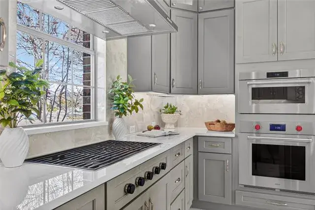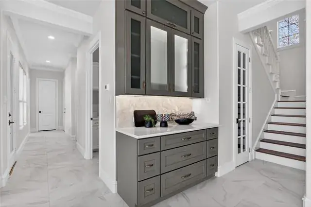 The fully remodeled kitchen is a showpiece, thoughtfully redesigned with premium Wolf appliances, Sub-Zero refrigeration, and Cove dishwasher, convection and steam ovens, quartzite countertops in kitchen, island and butler pantry stoneguard protected. Bonus is a stunning Wolf coffee bar—perfect for elevated daily living and entertaining alike. Open-concept living spaces flow seamlessly, offering both elegance and functionality, while a designated study provides an ideal work-from-home retreat.