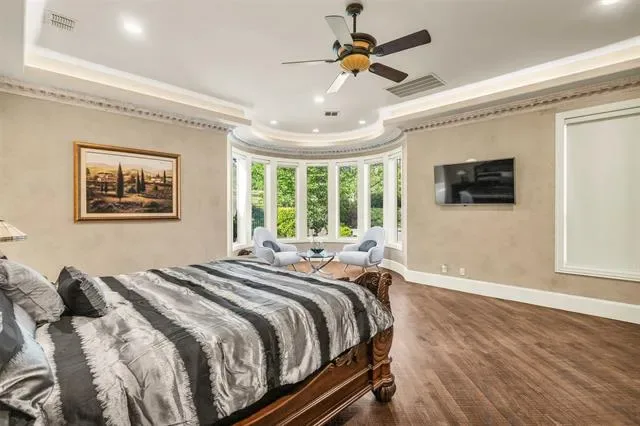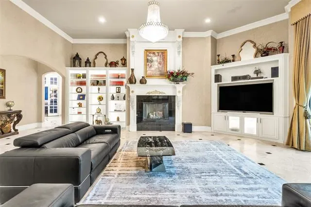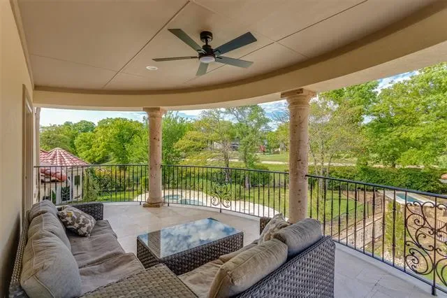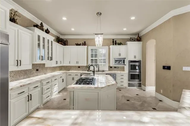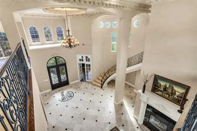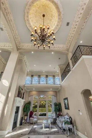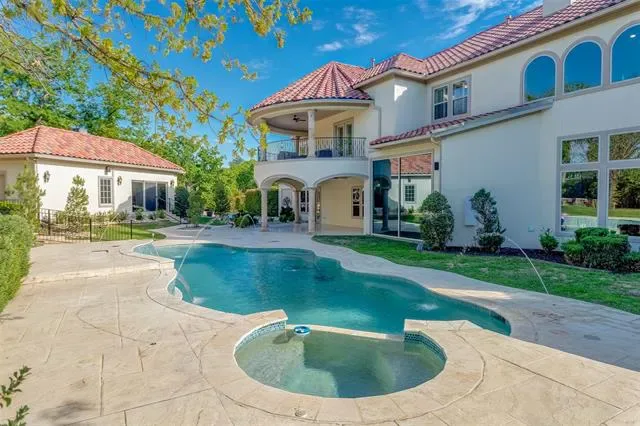 A stunning Mediterranean estate designed for those who love to entertain and live exceptionally well, this 7,499 square foot residence sits on 1.82 acres in a cul-de-sac on the golf course within the prestigious Estates at Tour 18, a 24-7 guarded and gated community. From the moment you step inside, soaring 25-foot ceilings create a dramatic and inviting presence, setting the tone for a home that is both grand and welcoming. Designed for hosting on any scale, the home features a dedicated media room, an large game room with kitchenette, and seamless indoor-outdoor living. The resort-style backyard offers a sports court, pool, and an impressive gas firepit, making it the perfect setting for unforgettable gatherings. At the heart of the home, the oversized kitchen is as functional as it is beautiful, featuring dual dishwashers, a vegetable sink, and striking lighted Cristallo countertops. Around the corner, a built-in desk area provides space for homework or everyday organization. The secluded master suite is a true retreat, complete with a sitting area. A versatile bonus room with a closet, ideal for a nursery, private office, craft room, or additional storage is nearby. The spa-like master bath offers a steam shower, rain head, and a towel warmer for a true luxury experience. Three additional bedrooms are upstairs, including one with its own balcony. A separate guest house offers comfort for extended stays or multigenerational living. Every detail has been carefully chosen, from marble countertops in all bathrooms to a central vac system, electronic window treatments, and chandeliers that lower electronically for easy maintenance. Set within one of the area’s most sought-after gated communities with scenic golf course views, this home offers a rare combination of privacy, scale, and elevated living. You can keep searching… but you won’t find another one like this. Many furnishings in the home are available for purchase.