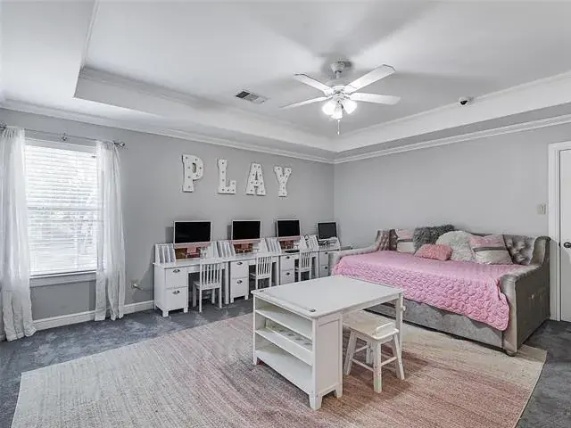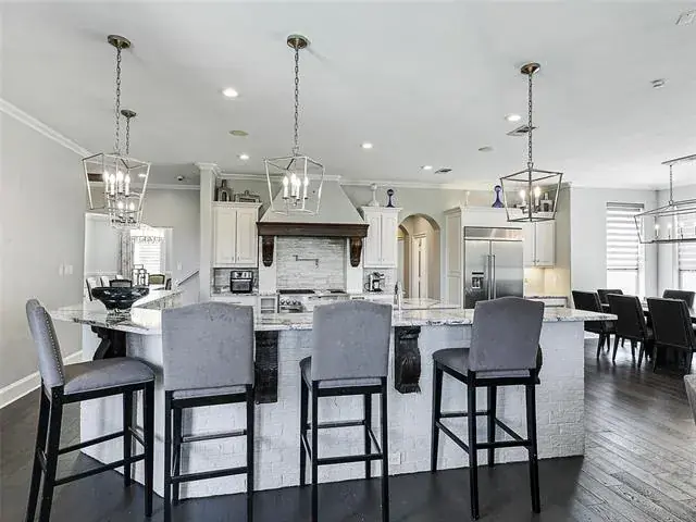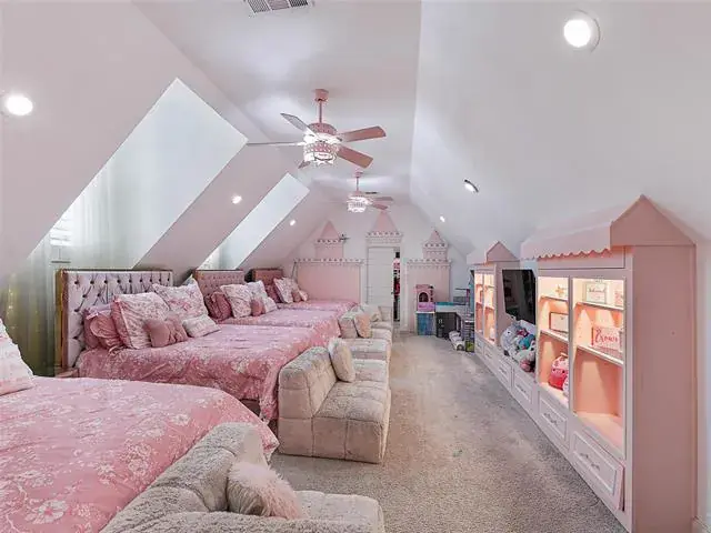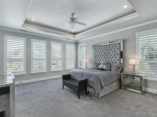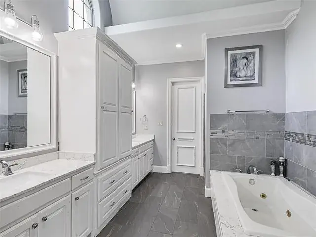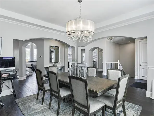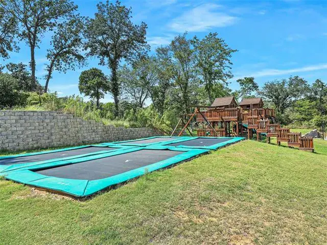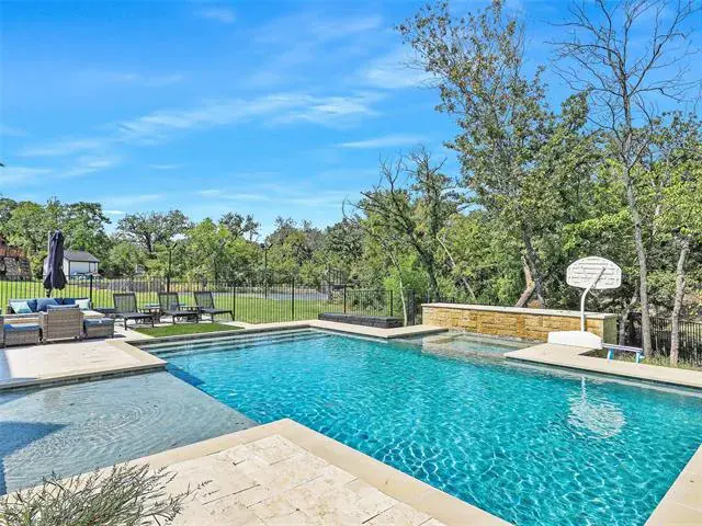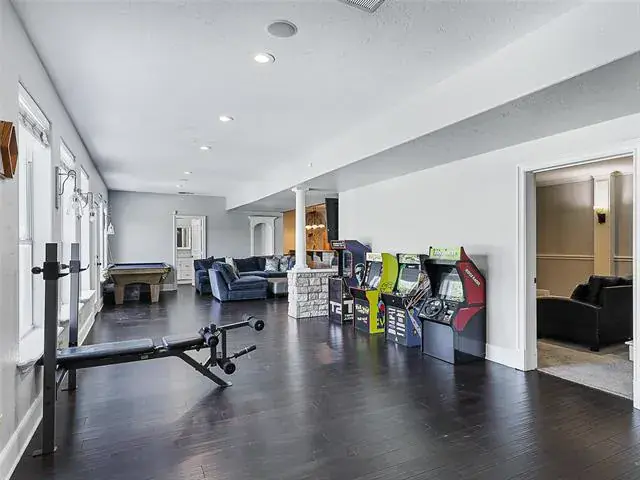 MAIN HOUSE is 7038 SQFT (Unfinished indoor sports court and additional garage space 2755SQFT). Luxury Living with Resort-Style Amenities! This stunning home features wood floors, crown molding, recessed lighting, and elegant arched entries throughout. Formal living and dining rooms impress with floor-to-ceiling windows, chandeliers, and custom details. The chef’s kitchen boasts granite countertops, island with built-in microwave, commercial-grade gas range, built-in refrigerator, breakfast bar, and abundant cabinets—open to the family room with built-ins and balcony access. The spacious primary suite offers a sitting area, spa-inspired bath with dual vanities, soaking tub, separate shower, and walk-in closet. Upstairs, you’ll find four large bedrooms, a game room with wet bar, media room, wine cellar, and bonus spaces including a playroom, guest suite, and custom bunk room. Enjoy 4 full baths and 2 half baths, a dedicated laundry room with utility sink, mudroom, and a 3-car garage. Outdoor living shines with a heated pool-spa, firepit, full-court basketball, inground trampolines, playground, balcony, and a large fenced yard. Located on a quiet street, exclusive prestigious Tour 18.