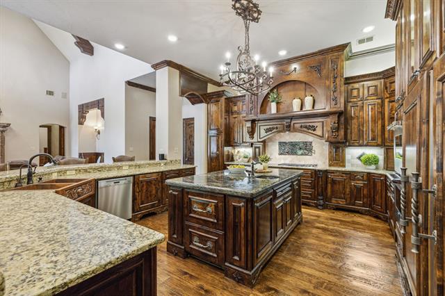 Built-in Features, Cable TV Available, Cathedral Ceiling(s), Chandelier, Decorative Lighting, Double Vanity, Dry Bar, Eat-in Kitchen, Elevator, Flat Screen Wiring, Granite Counters, High Speed Internet Available, In- Law Suite Floorplan, Kitchen Island, Multiple Staircases, Natural Woodwork, Paneling, Pantry, Smart Home System, Sound System Wiring, Vaulted Ceiling(s), Wainscoting, Walk- In Closet(s), Wet Bar, Wired for Data, Second Primary Bedroom