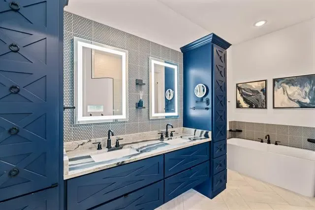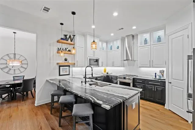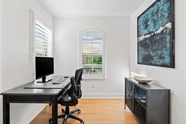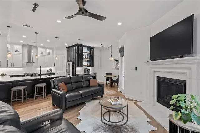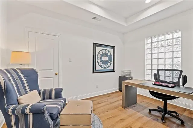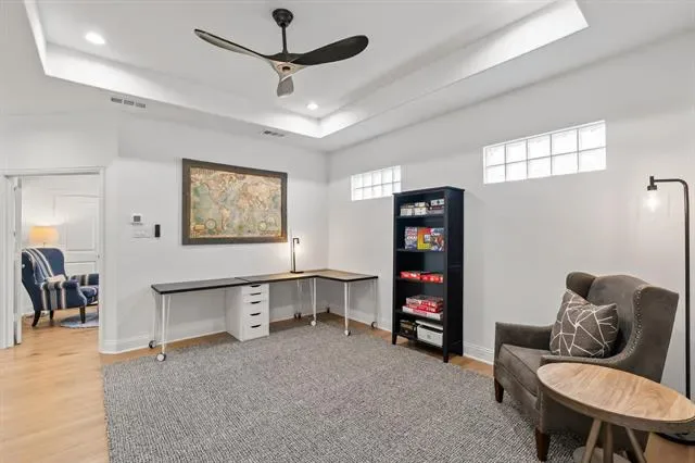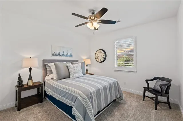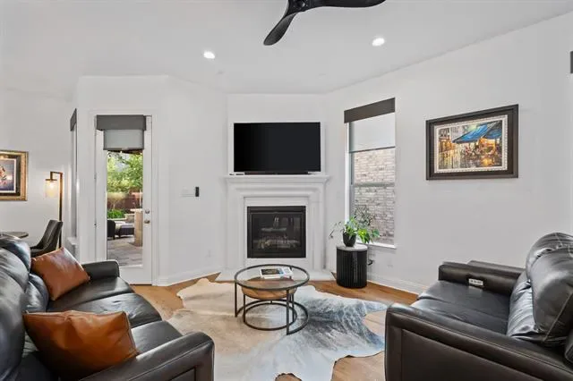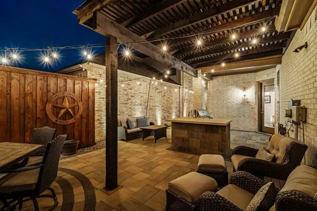 Better than new completely updated Concord plan zero lot line home in the River Walk community of Flower Mound. Versatile floorplan with 3 bedrooms, gameroom, media room and TWO OFFICES! Primary suite is conveniently located on main floor featuring french doors to the front porch, custom wall treatment, custom closet system, garden tub with separate shower, custom vanity and linen towers and LED mirrors that display the weather. Transitional design with LVP flooring throughout downstairs and a combination of LVP and carpet upstairs. The laundry room has a custom cabinet system with valet rods that make laundry easy to do. Upstairs find his and her offices, 2 bedrooms with bathrooms, gameroom, and media room. Tons of natural light throughout and when you step outside you will see the outdoor built-in grill, covered patio and pergola, pavers throughout for easy maintenance and there is even a chess board with oversized pieces ready for you to play. Extensive outdoor lighting and landscaping pavers make this small yard so beautiful and easy to maintain. Furniture and TVs are available for purchase as well as fridge and washer dryer tower. This home has room for everyone. Living at the River Walk also provides a lifestyle unique to the area. The walking route from front door to around the River Walk and chapel and back home is a mile so that makes your evening walk interesting and fun. Enjoy riverside dining and live music just a short walk away. Come experience the River Walk lifestyle with this low maintenance place to call home. Truly a lock and leave setup with very low maintenance and an urban lifestyle while still in the heart of Flower Mound.