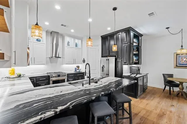 Built-in Wine Cooler, Cable TV Available, Decorative Lighting, Double Vanity, Dry Bar, Flat Screen Wiring, Granite Counters, High Speed Internet Available, Pantry, Sound System Wiring, Walk- In Closet(s)