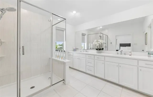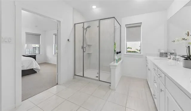 Upstairs, a versatile loft overlooks the main living space, offering flexibility for a second living area, media room, or play space. The primary suite is both spacious and inviting, featuring an ensuite bath with dual vanities, a glass-enclosed shower, and ample storage. Two additional bedrooms provide comfortable accommodations for family or guests.