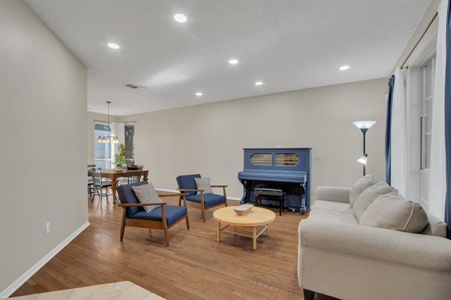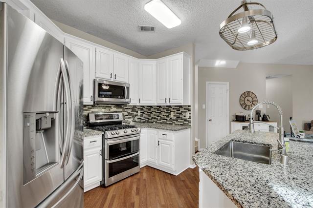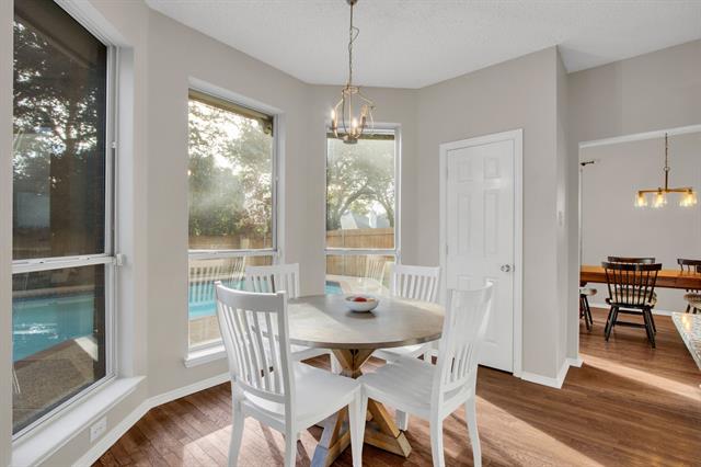 Beautifully updated two-story home with a sparkling pool, ideally located in the heart of Flower Mound with no HOA. This move-in-ready property offers a flexible and spacious floor plan featuring two living areas and two dining spaces, providing plenty of room for both everyday living and entertaining. The remodeled kitchen is a true centerpiece, showcasing granite countertops, a large island, gas range, double ovens, tile backsplash, and abundant cabinetry.