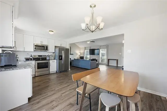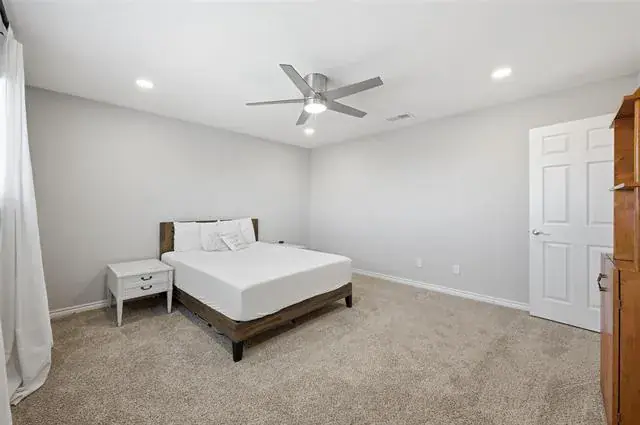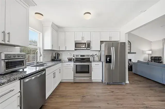 The fully renovated kitchen is a standout, featuring granite countertops, stainless steel appliances, and ample cabinetry—perfect for both everyday living and entertaining. The refrigerator will convey with the home, adding extra value and convenience for the next owner. Finished in timeless neutral tones, the interior also boasts stunning, updated bathrooms and exceptionally large bedrooms.