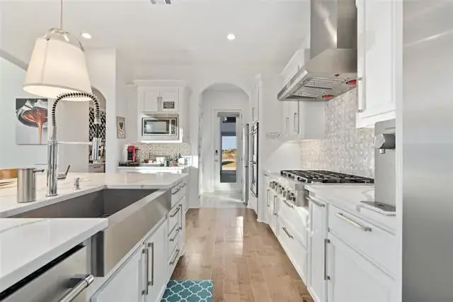 [[MOTIVATED SELLER SUBMIT OFFER NOW!!]] Nestled in the prestigious Town Lake neighborhood of Flower Mound, this stunning Toll Brothers home offers the perfect blend of elegance, modern comfort, and thoughtful design. The meticulously landscaped grounds and heavy-duty double wrought iron doors welcome you into a space defined by sophistication. Inside, a grand curved staircase sets the tone, complemented by French Oak hardwood floors, high ceilings, and intricate wall paneling. The kitchen is a chef’s dream, featuring quartz countertops, a commercial-grade cooktop and vent, built-in KitchenAid appliances, a double oven, a spacious island, a walk-in pantry, and a cozy eat-in area perfect for gatherings. The master suite serves as a luxurious retreat with a spa-like bathroom, while modern light fixtures throughout the home enhance its contemporary appeal. This expansive 5,000+ sq. ft. residence boasts 5 bedrooms, each with an ensuite bathroom, a formal dining room, private study, game room, and media room. Sliding doors lead to Elite cabana-covered patios and a balcony, where you can relax and enjoy the cool breeze with family and friends. Outside, the spacious backyard offers ample room for outdoor activities, while the three-car garage and private parking spaces complete this exceptional property. A true gem in one of Flower Mound’s most sought-after neighborhoods, this home delivers luxury, style, and comfort at every turn. This is not just buying a home its buying a Lifestyle.