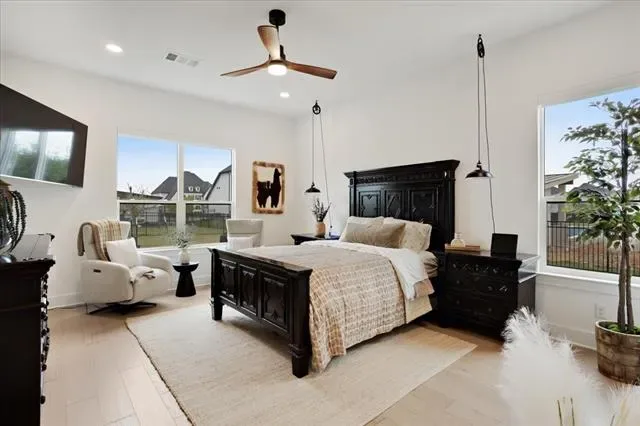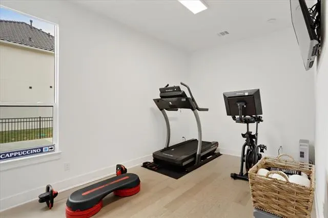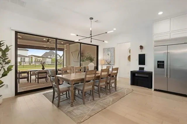 This exceptional two-story residence seamlessly blends modern transitional design with refined elegance, offering 4 spacious bedrooms, 4.5 bathrooms, expansive living areas, a game room, dedicated fitness room, a private office with custom built-in cabinetry-book shelves, an additional office nook, a 3-car garage with custom cabinetry designed for both style and functionality.