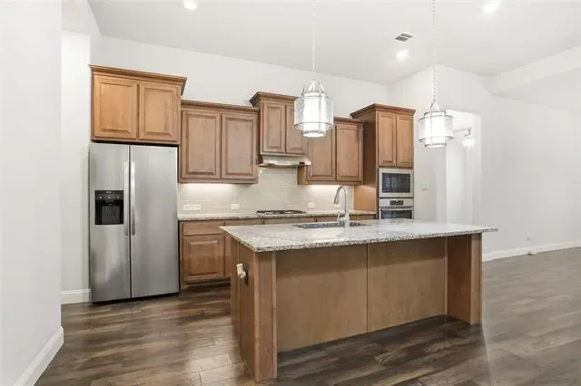 Welcome to this beautifully maintained K. Hovnanian-built single-story home, located in the highly desirable Trailwood community of Flower Mound, near FM 1171 &' FM 377. Built in 2018, this 4-bedroom, 3-bathroom home features a spacious 3-car garage and sits in a thoughtfully designed neighborhood known for its quality construction, generous lot spacing, and natural surroundings.