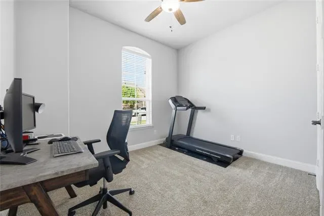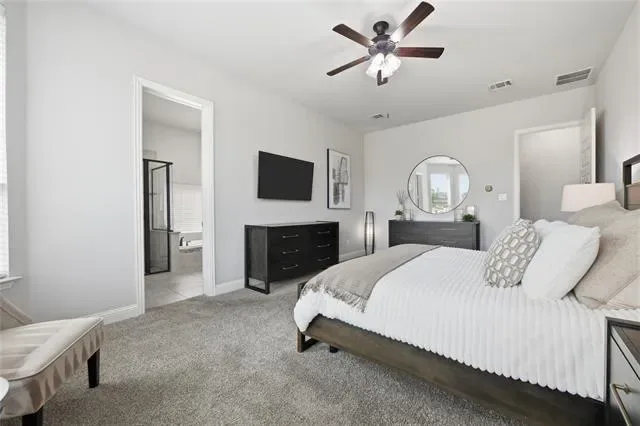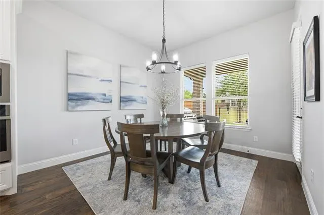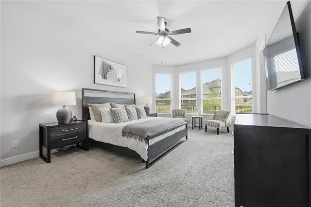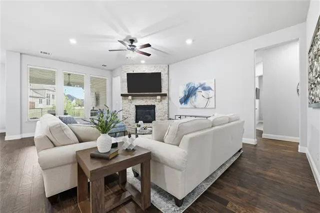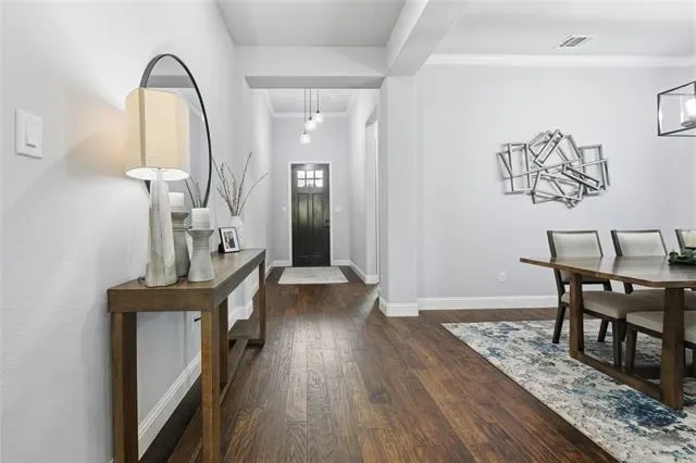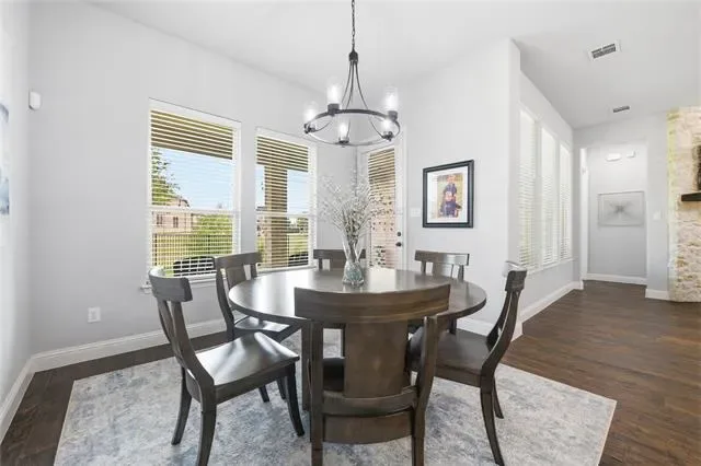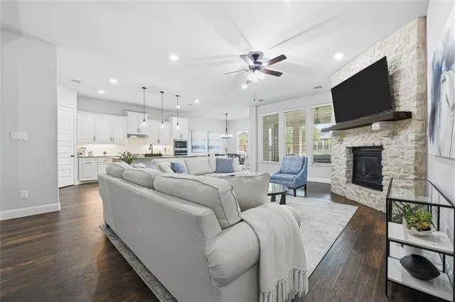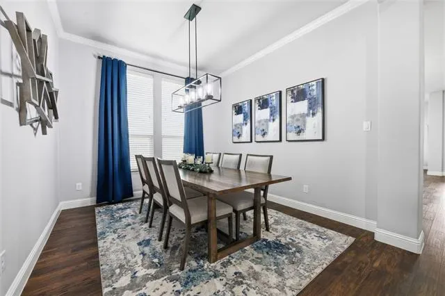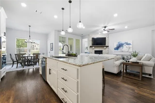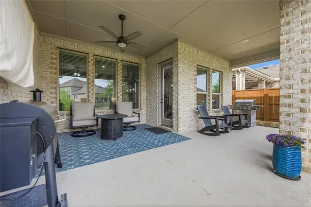 Experience the perfect blend of luxury and tranquility in this immaculate single-story retreat, perfectly positioned on a premier greenbelt lot within a quiet cul-de-sac. From the moment you arrive, gorgeous curb appeal and lush landscaping set the stage for a home designed for both elegant entertaining and comfortable daily living. Stepping inside, the open-concept floor plan is bathed in natural light from abundant windows, highlighting extensive wood flooring, crown molding, updated light fixtures, and sophisticated 6-panel interior doors. The inviting living area features a stunning floor-to-ceiling stone fireplace with gas logs and flat-screen wiring, creating a warm focal point for cozy evenings. Culinary enthusiasts will fall in love with the modern kitchen, boasting crisp white cabinetry with under-cabinet lighting, granite countertops, a classic subway tile backsplash, and stainless steel appliances. Retreat to the secluded primary suite, where a bay window sitting area offers a peaceful spot to unwind while enjoying backyard views. The spa-like bath features a dual-sink granite vanity, a deep soaking tub, a separate shower, and a massive walk-in closet with seasonal storage. With a split-bedroom layout for maximum privacy, the fourth bedroom is ideally situated to serve as a quiet home office. Outdoor living is elevated by a spacious covered patio with a ceiling fan, providing an unobstructed open view of the serene greenbelt. Complete with a 3-car garage and access to a community pool, playground, and park, this home offers an unparalleled lifestyle within the highly sought-after Argyle ISD. Enjoy the peace of a secluded neighborhood with easy access to 35W and 377. Take a first-person look at this gorgeous home! Click the Virtual Tour link to see the 3D Tour!
