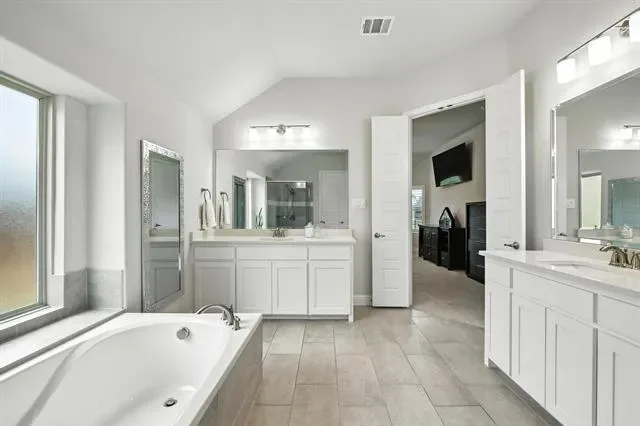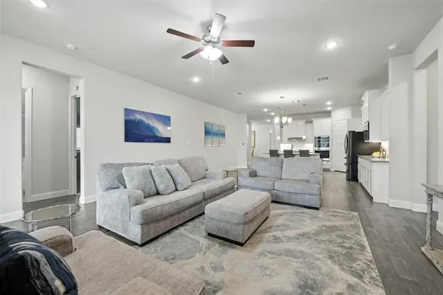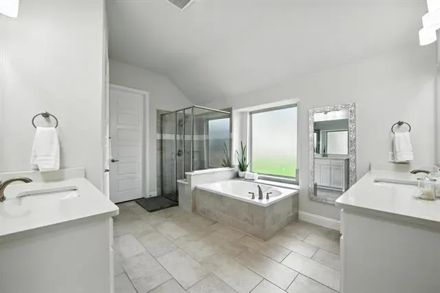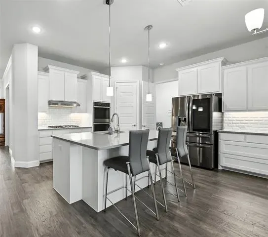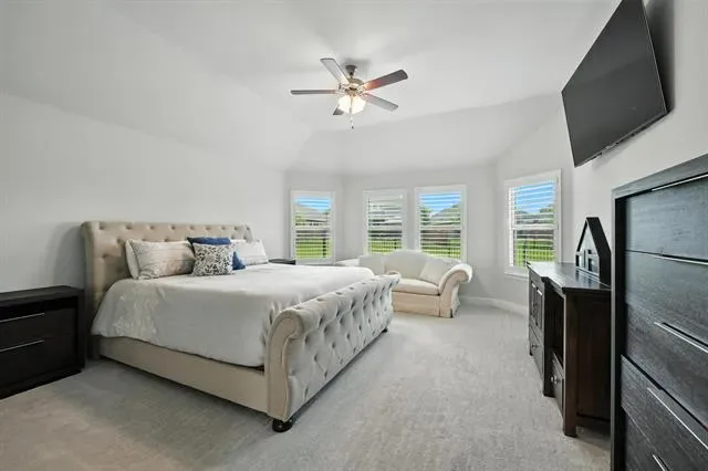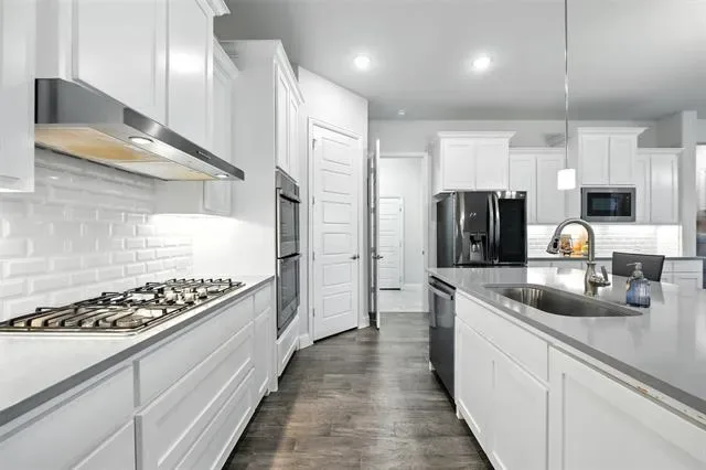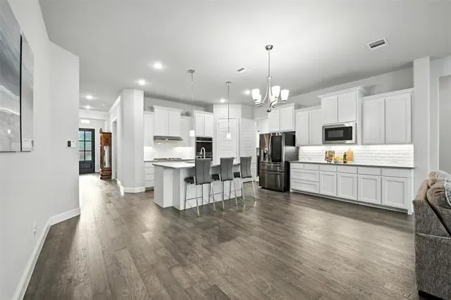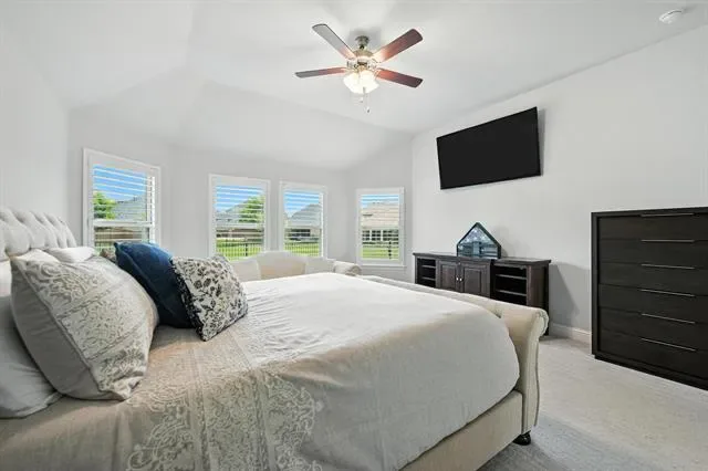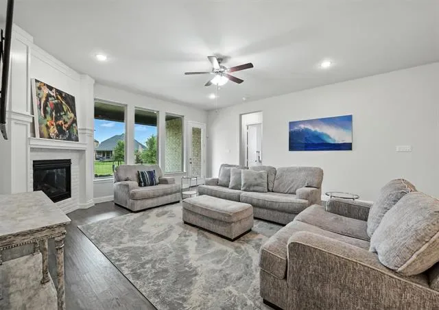 LIKE-NEW SPRAWING SINGLE-STORY LOADED WITH UPGRADES ON A QUIET CUL-DE-SAC STREET, located within the award-winning ARGYLE school district! This home has recently been painted and is move-in ready! Discover a home styled to perfection, graced with a Brilliant smart home system, extensive wood flooring, 6-panel interior doors, plantation shutters, crown molding, a cozy fireplace & a home office with French doors. Inspire your inner chef in the modern kitchen boasting white cabinets, quartz countertops, stainless steel appliances, a double oven, a 5-burner gas cooktop, under cabinet lighting & an island with a breakfast bar. Pamper yourself in the secluded primary suite featuring a bay window sitting area,
