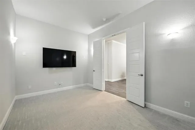 soaking tub, separate shower, dual sink quartz vanity & a walk-in closet with built-ins, or entertain family & friends in the private media room wired for surround sound. Spend time outdoors in your spacious backyard, including a large covered patio & gorgeous greenbelt views, or take advantage of the tandem 3 car garage, ideal for oversized vehicles. Trailwood Residents have access to a community pool, playground & park. Take a first-person look at this gorgeous home!
